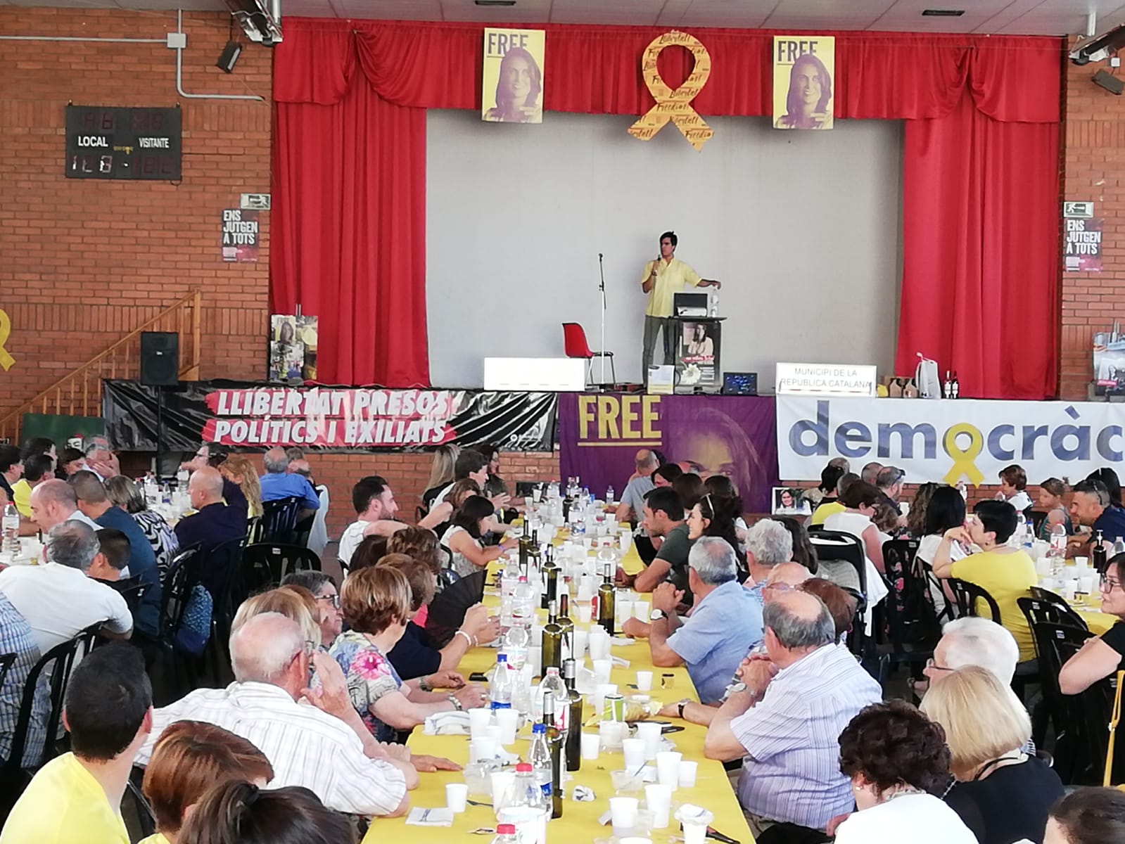 200 persones han participat aquest diumenge a Vallfogona en un Dinar Groc Solidari amb les famílies de les persones preses i exiliades polítiques. I la Inauguració del nom del Pavelló Meritxell Serret