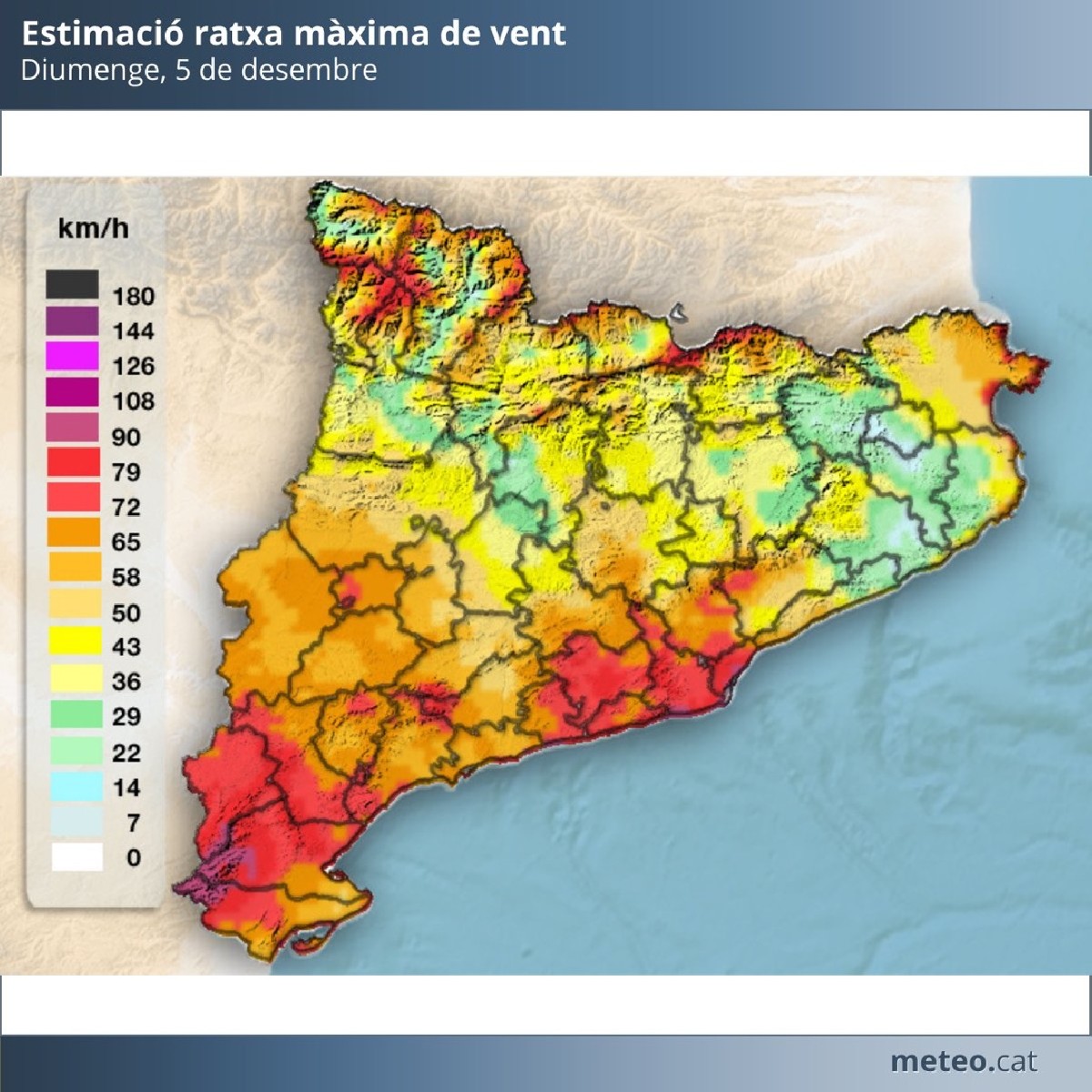 Protecció Civil de la Generalitat ha activat l'alerta per un nou episodi de fort vent a Catalunya a partir de la propera matinada, durant tot el diumenge i fins dilluns. Segons el Servei Meteorològic de Catalunya (SMC), les ratxes més intenses es produiran a les comarques de Tarragona, sud de Barcelona i sud de la Catalunya Central. Tot i això, el llindar de vent també es podria superar a moltes comarques de la demarcació de Lleida, Terres de l'Ebre, Barcelona, Catalunya Central, Pirineu i Prepirineu. En paral·lel, la nevada pot ser abundant al Pirineu (especialment a l'Aran) amb acumulacions de més de 20 centímetres a la cota 1.200 i baixant a 800 metres. En aquestes zones, i sobretot a les cotes més altes, es produirà el fenomen del torb.