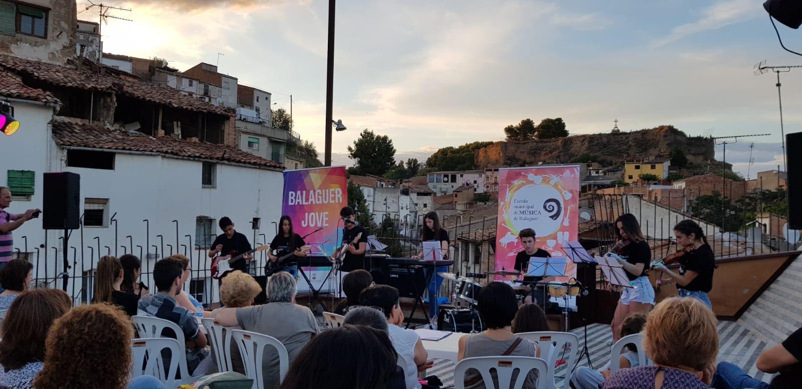 Aquest dimarts ha tingut lloc a la terrassa del casal Lapallavacara un concert de LA KOMBAND, THE STRINGERS i EL HAT COMBO, de l'Escola de Música dins del 3è cicle de concerts 'Música i Tapes' de Balaguer
