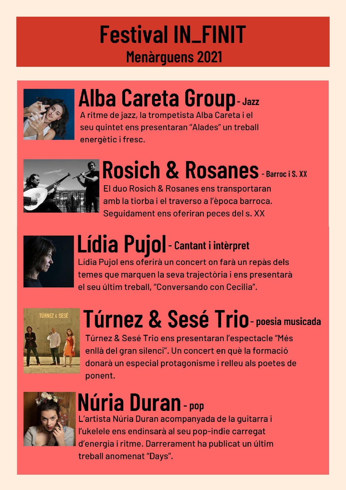 Aquest dissabte dia 13 de març, a les 8 del vespre, tindrà lloc el tercer dels concerts del festival IN_FINIT, el cicle de cultura de Menàrguens per aquest inici d'any.