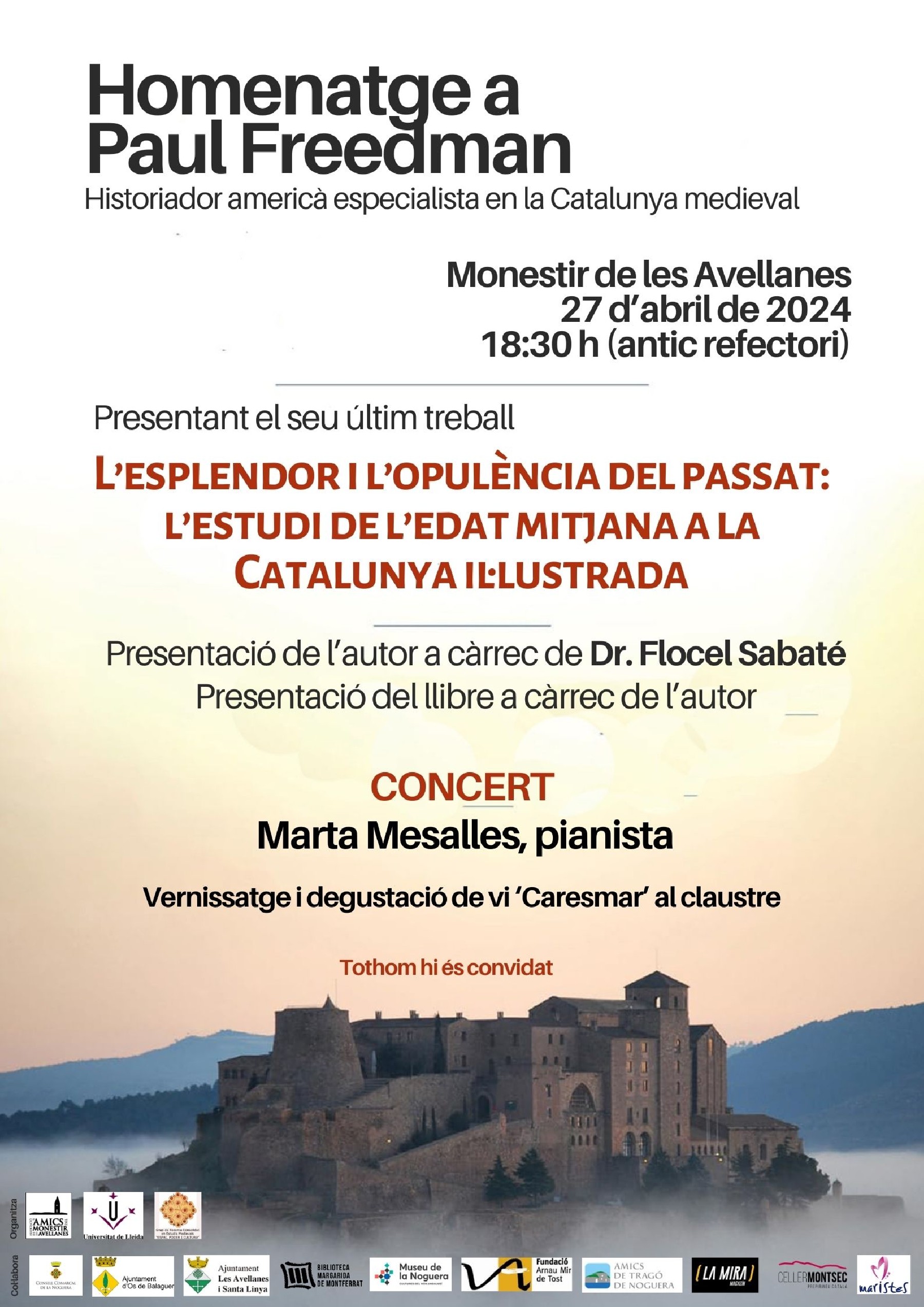 El dissabte 27 d'abril a les 18:30h el Monestir de les Avellanes acollirà l'acte d'homenatge al professor Paul Freedman de la Yale University de Nova York.