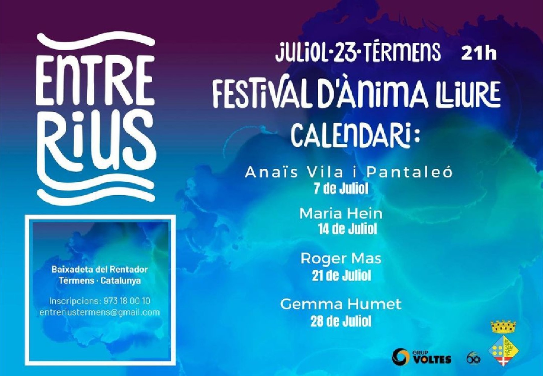 El Festival EntreRius està organitzat per l'Ajuntament de Térmens i la direcció musical va a càrrec de Màxim Solanes i compta amb la col·laboració del GRUP VOLTES SL.