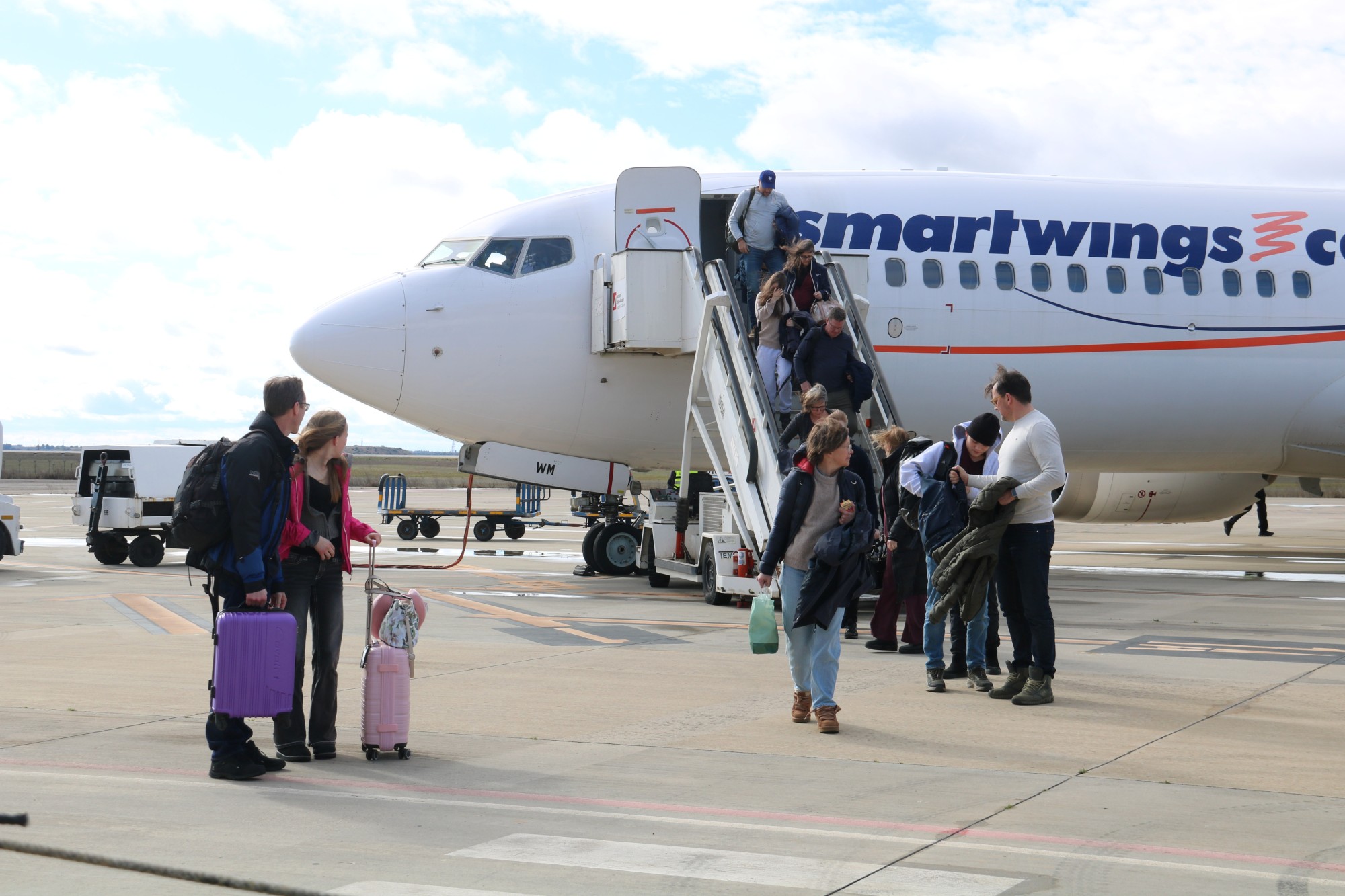 Arriben a l'aeroport de Lleida-Alguaire els esquiadors suecs del primer vol de la temporada d'hivern de Quality Travel. L'empresa torna a operar a l'equipament lleidatà després de quatre anys per portar turistes a Andorra i la Val d'Aran