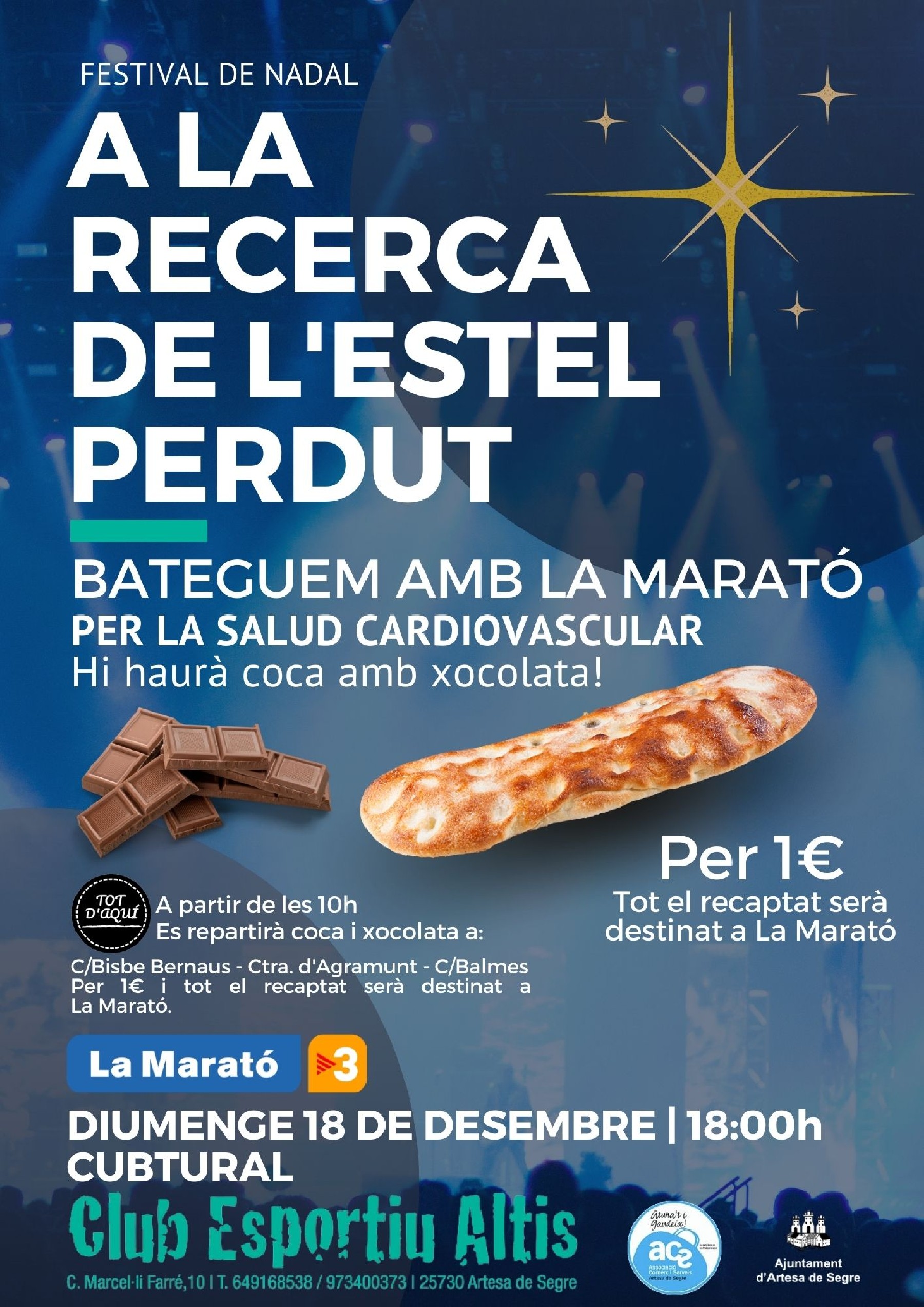 Finalment a la tarda i al Cubbtural tindrà lloc el festival de Nadal del Club esportiu Altis. Sota el nom de 'A la recerca de l'estel perdut', es podrà gaudir d'un espectacle, a partir de les 6 de la tarda al Cubbtural.