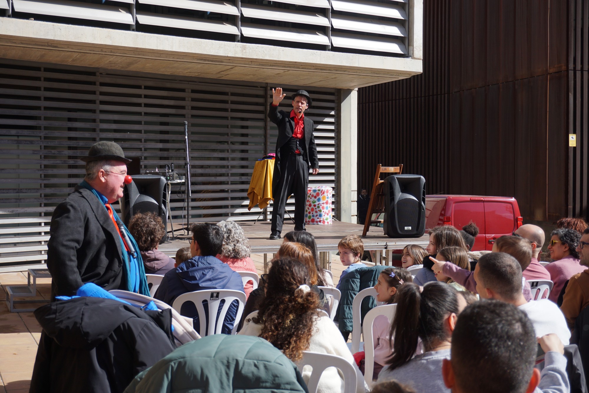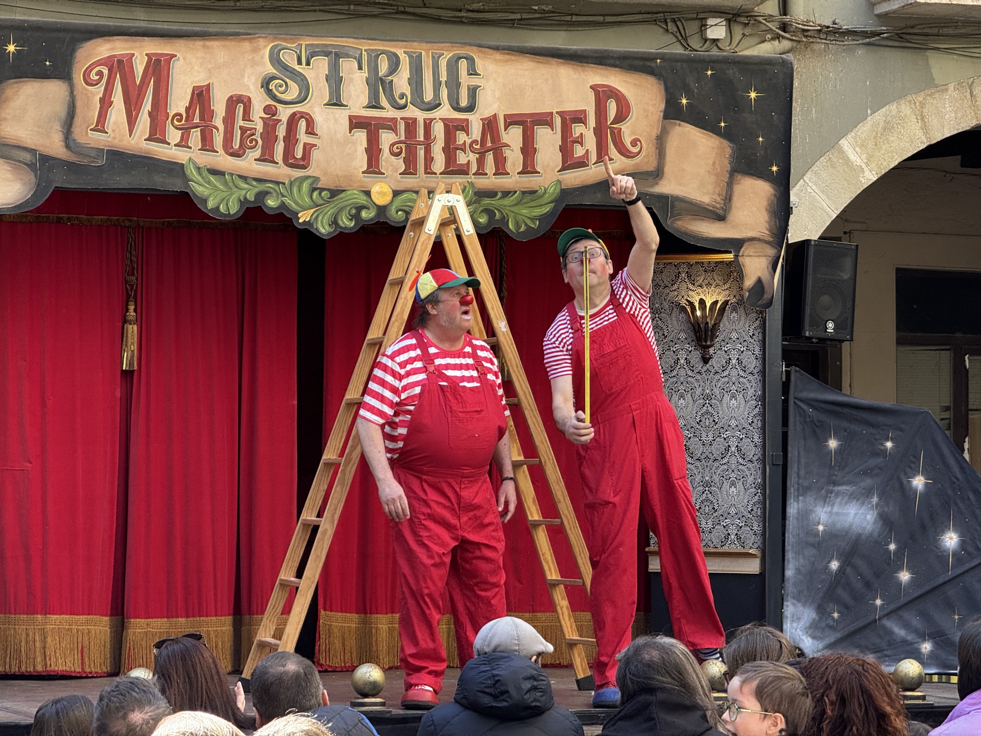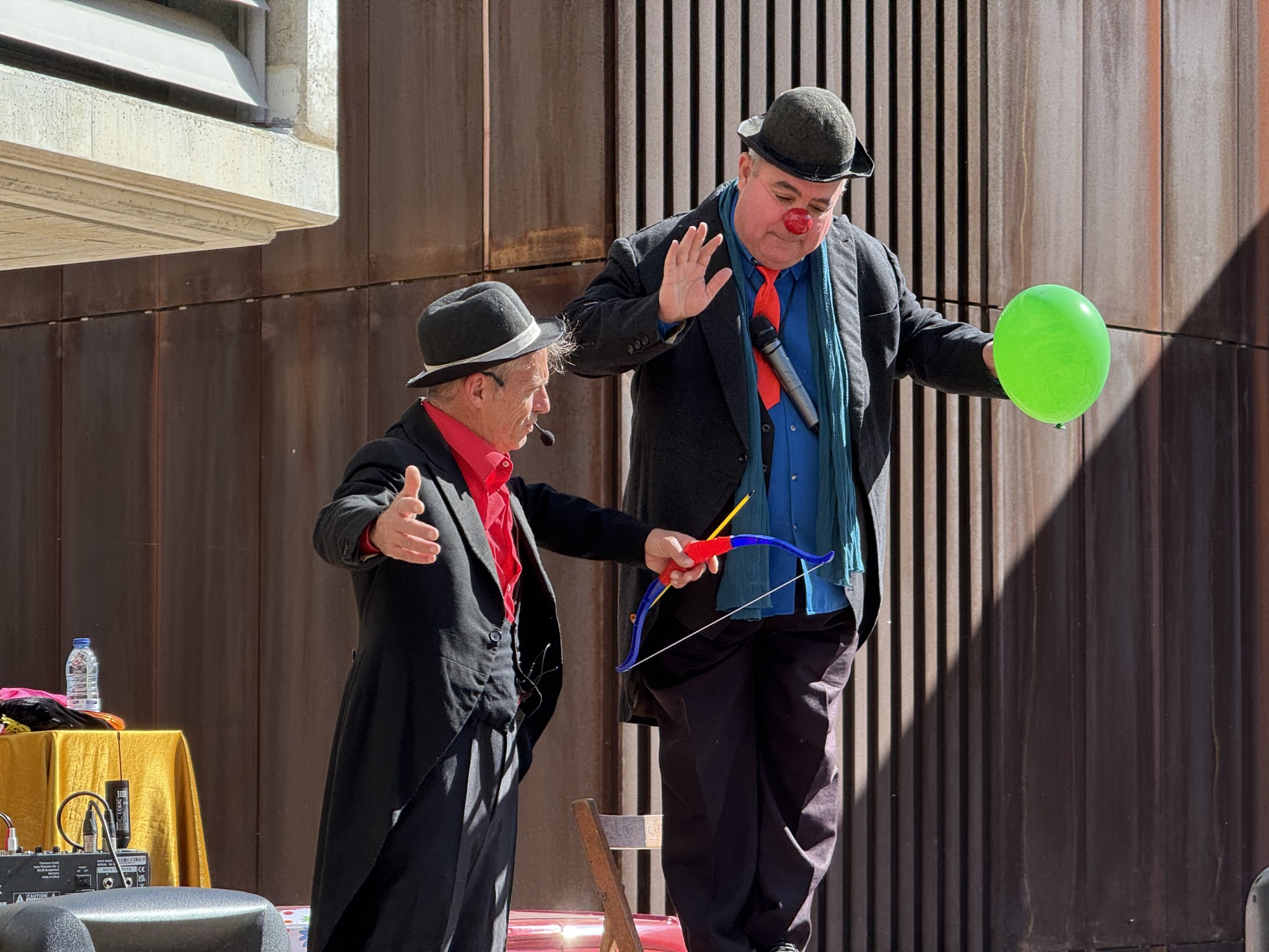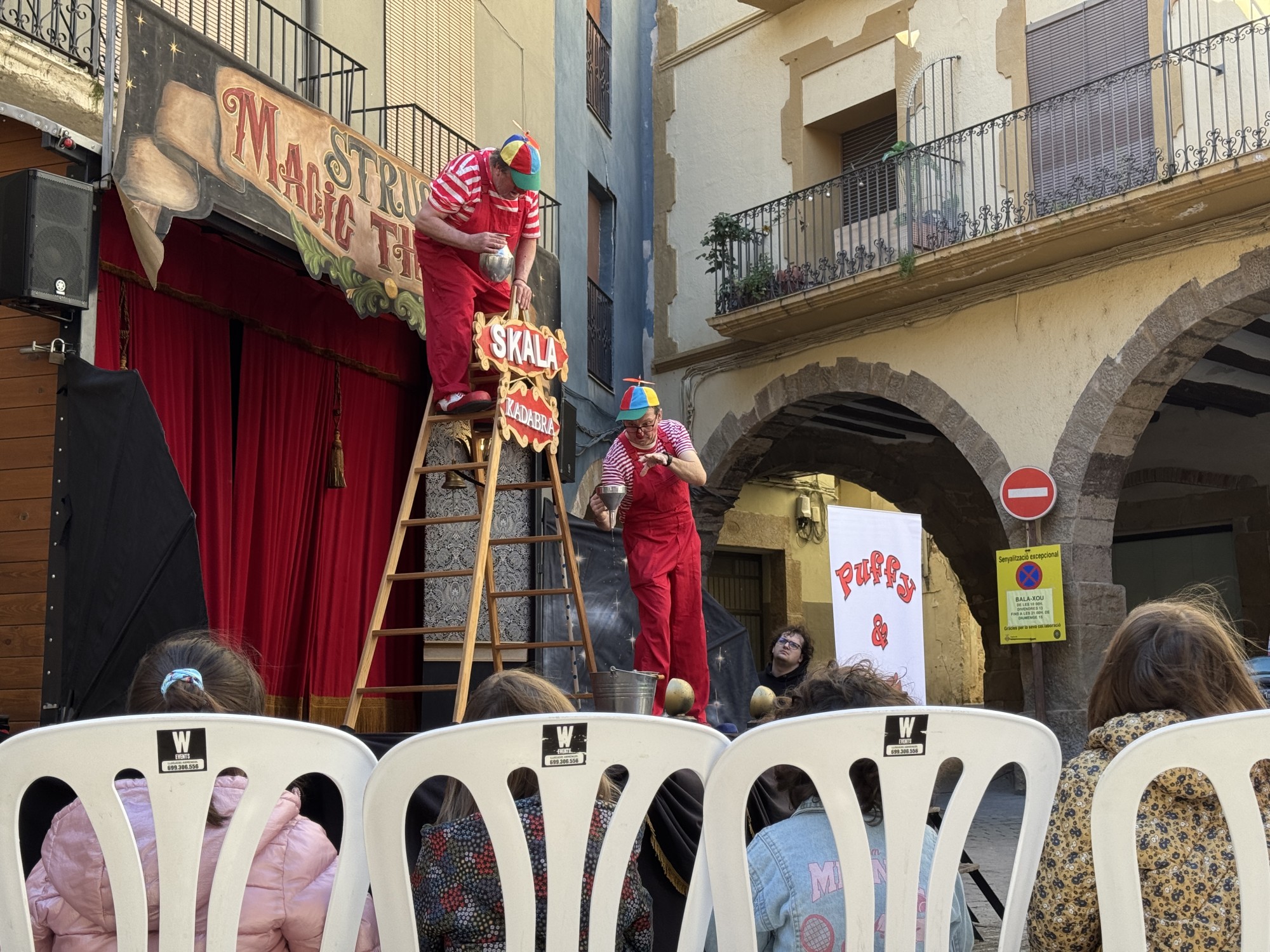El festival ha continuat al migdia amb l’espectacle “Skalakadabra” de Puffy & Didí, a la plaça del Pou, una proposta protagonitzada per dos pallassos que exploren totes les possibilitats d’una escala de fusta en una successió d’escenes absurdes i molt humorístiques.