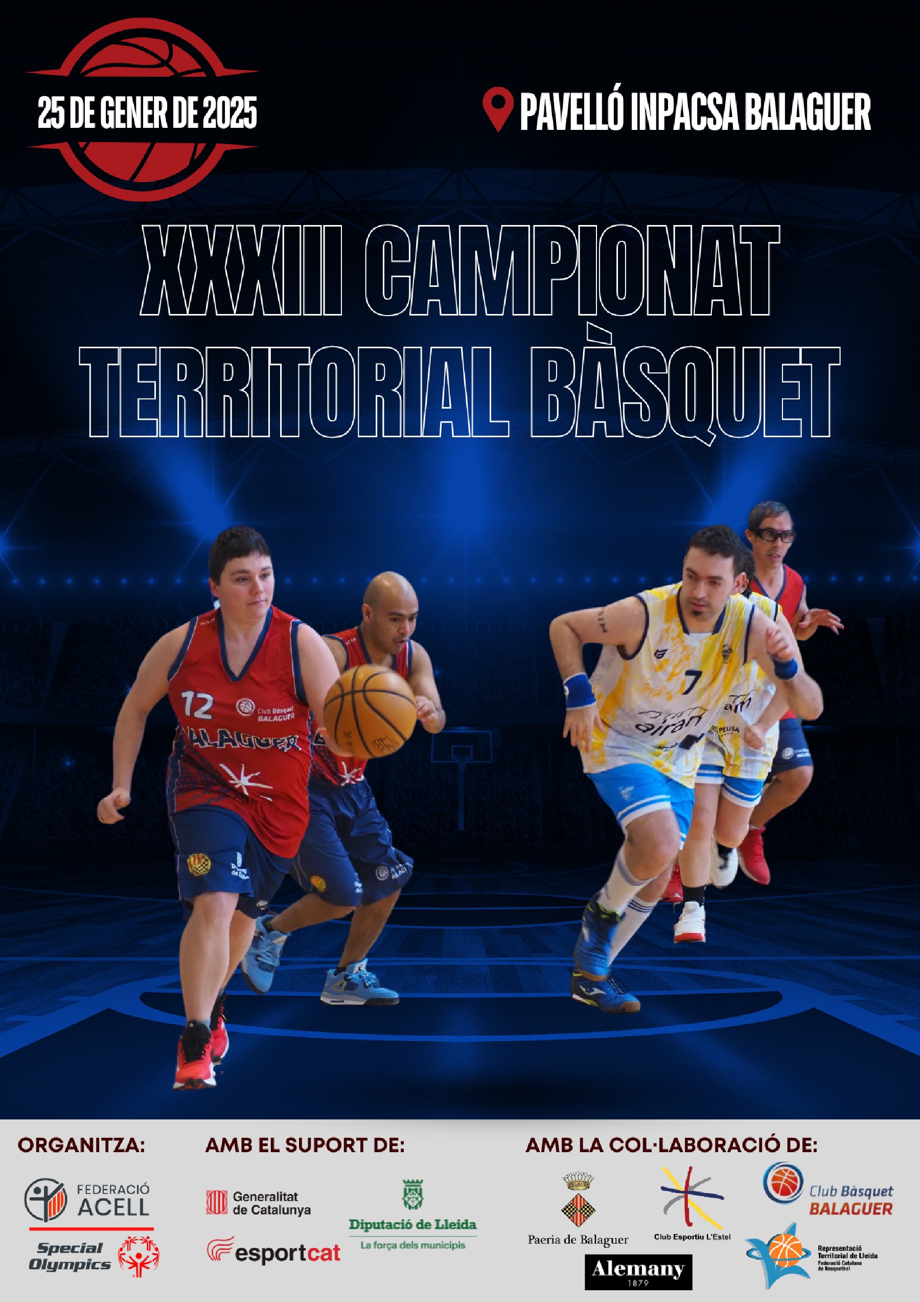 El proper dissabte 25 de gener de 2025 se celebrarà el XXXIII Campionat Territorial de Bàsquet al Pavelló INPACSA de Balaguer durant tot el matí, corresponent a la temporada 2024-2025.