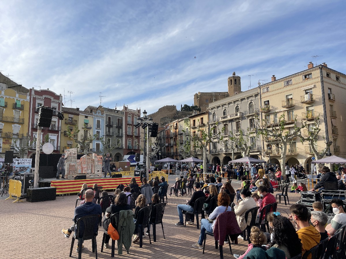 Balaguer ha celebrat aquest divendres la diada de Sant Jordi, una diada que la Paeria ha decidit concentrar aquest any a la plaça del Mercadal on durant tota la jornada s'han fet diferents espectacles i on també hi ha hagut les parades dels llibreters i els floristes. La mesura s'ha pres per poder controlar els accessos i evitar aglomeracions. Un total 6.000 persones han passat per la plaça Mercadal de forma esglaonada i amb control d'aforament al llarg de la jornada.