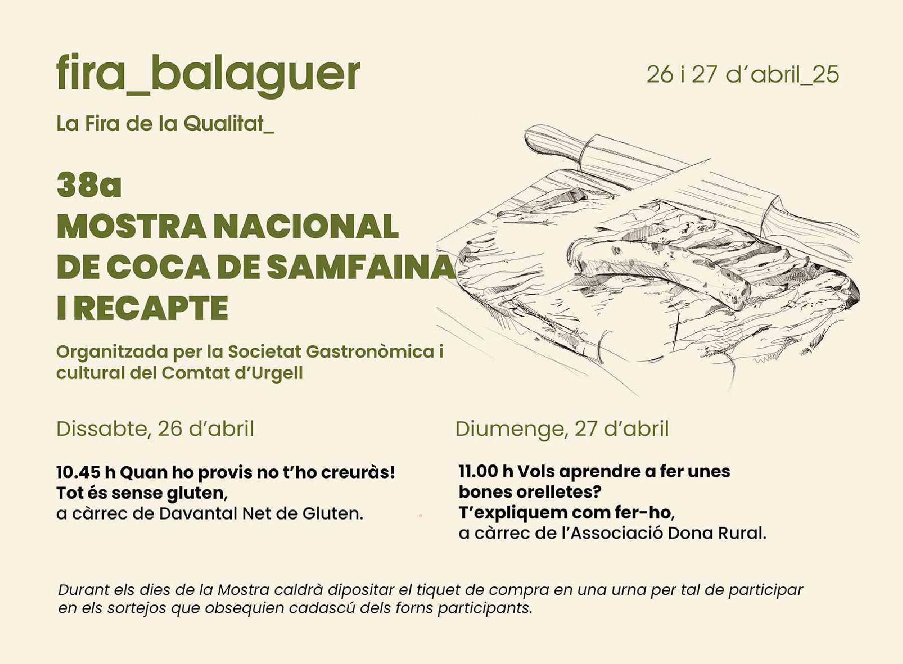 També en aquest àmbit, i com a novetat destacada, tindrà lloc la Mostra Nacional de Coques de Recapte i Samfaina, amb la participació d'una quinzena de forners de la comarca i la presència d'un pastisser especialitzat en cuina per a celíacs. L'activitat està organitzada per l'Associació Gastronòmica i Cultural del Comtat d'Urgell i pretén reforçar el paper d'aquests productes tradicionals com a elements identitaris.
