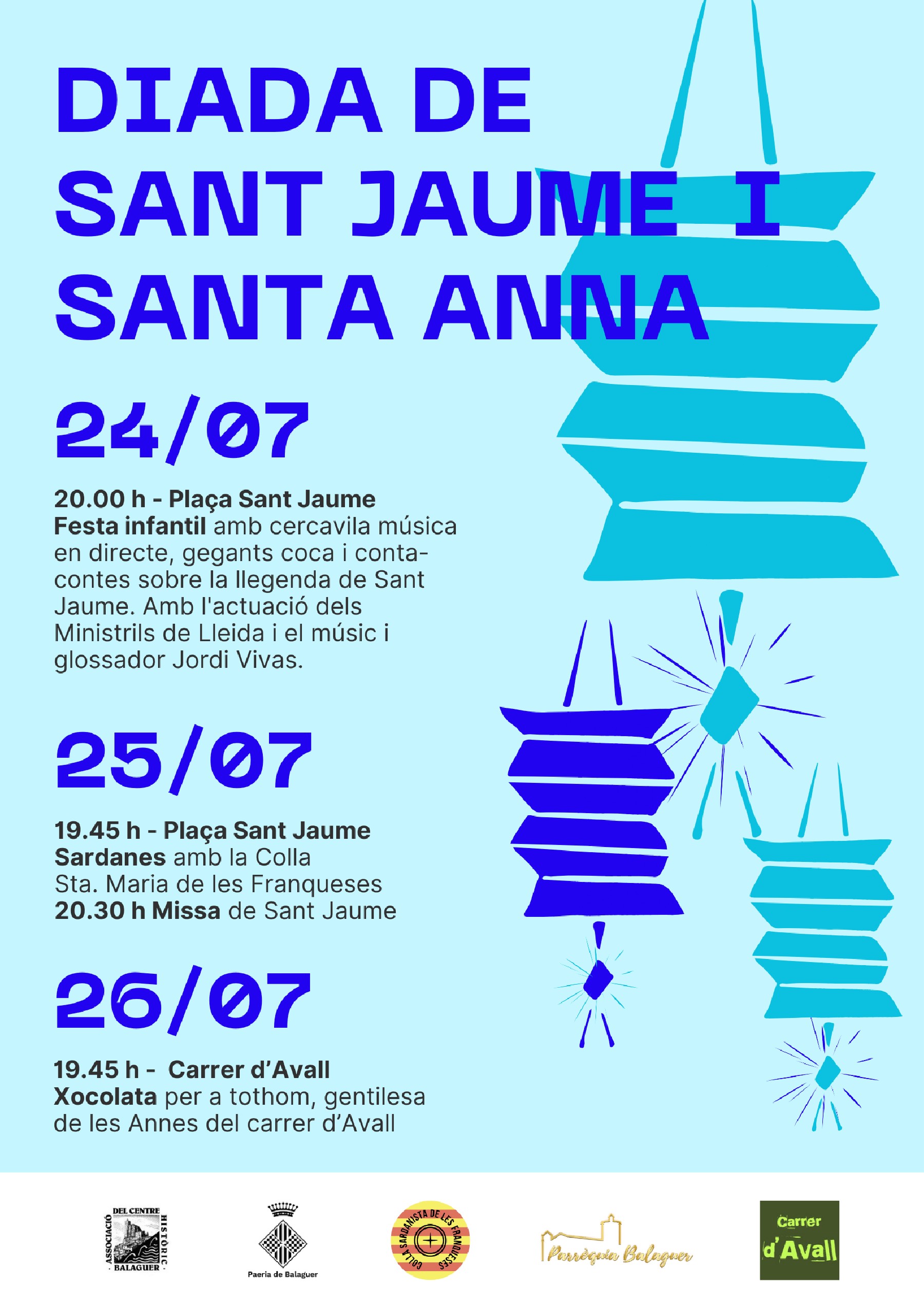L'Associació de Veïns del Centre Històric de Balaguer ha organitzat del 24 al 26 de juliol diferents activitats de caire infantil, cultural i popular per celebrar la diada de Sant Jaume i Santa Anna.