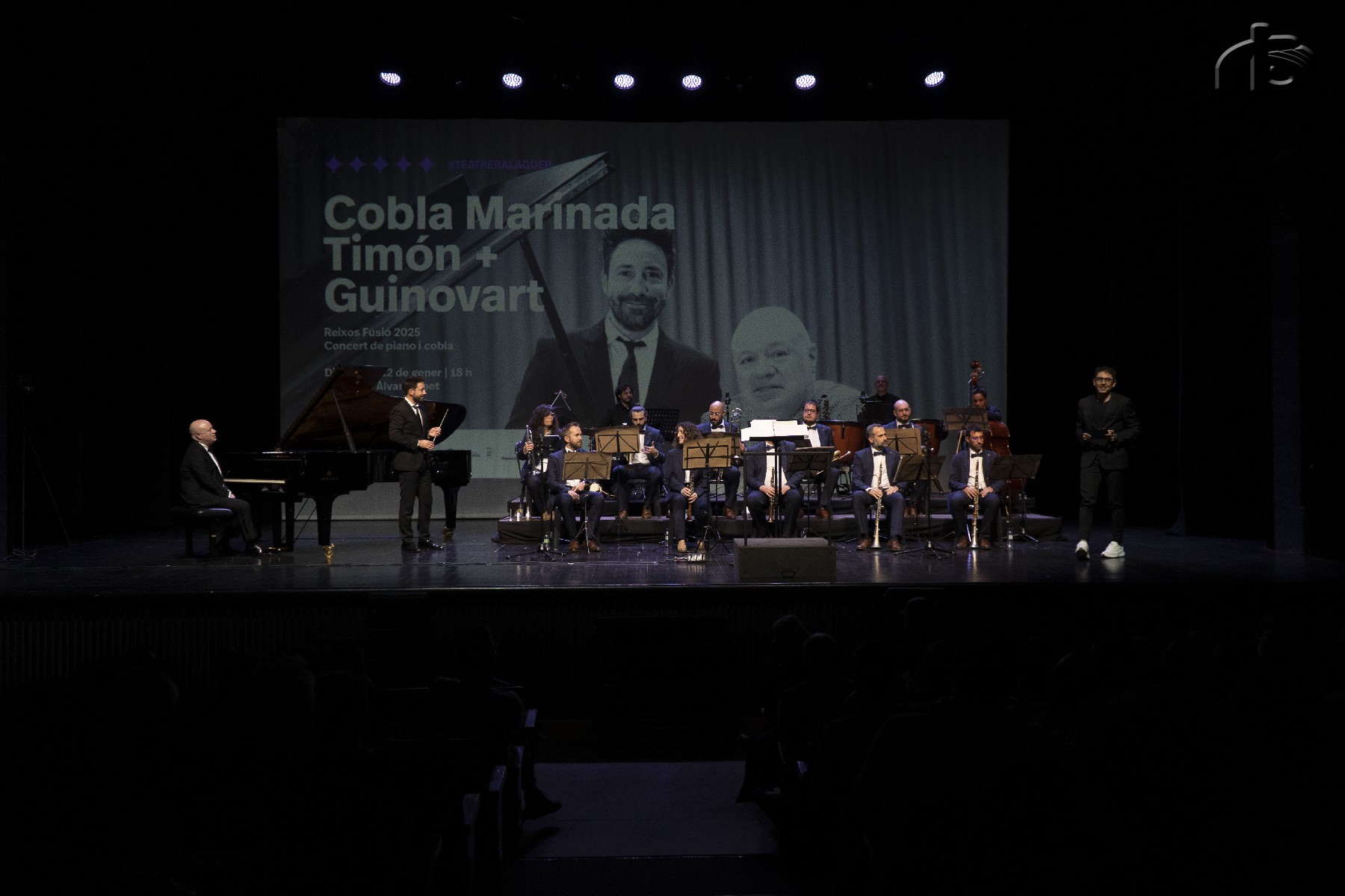 El programa musical ha començat amb una primera part més sardanística, amb sardanes del mateix Timón, una segona part més jazzística amb Rhapsody in blue del nord-americà George Gershwin, un dels estàndards més clàssics d'aquest gènere. I una tercera part amb obres de l'Albert Guinovart, entre les que destaca el Concert per a piano i cobla amb obres de Mar i cel, l'obra més icònica del concert i amb la que s'ha volgut reconèixer a la companyia Dagoll Dagom la tasca feta durant aquests 50 anys, i al mateix temps, posar en valor la importància del musical 'Mar i Cel' per promoure el teatre musical en català.