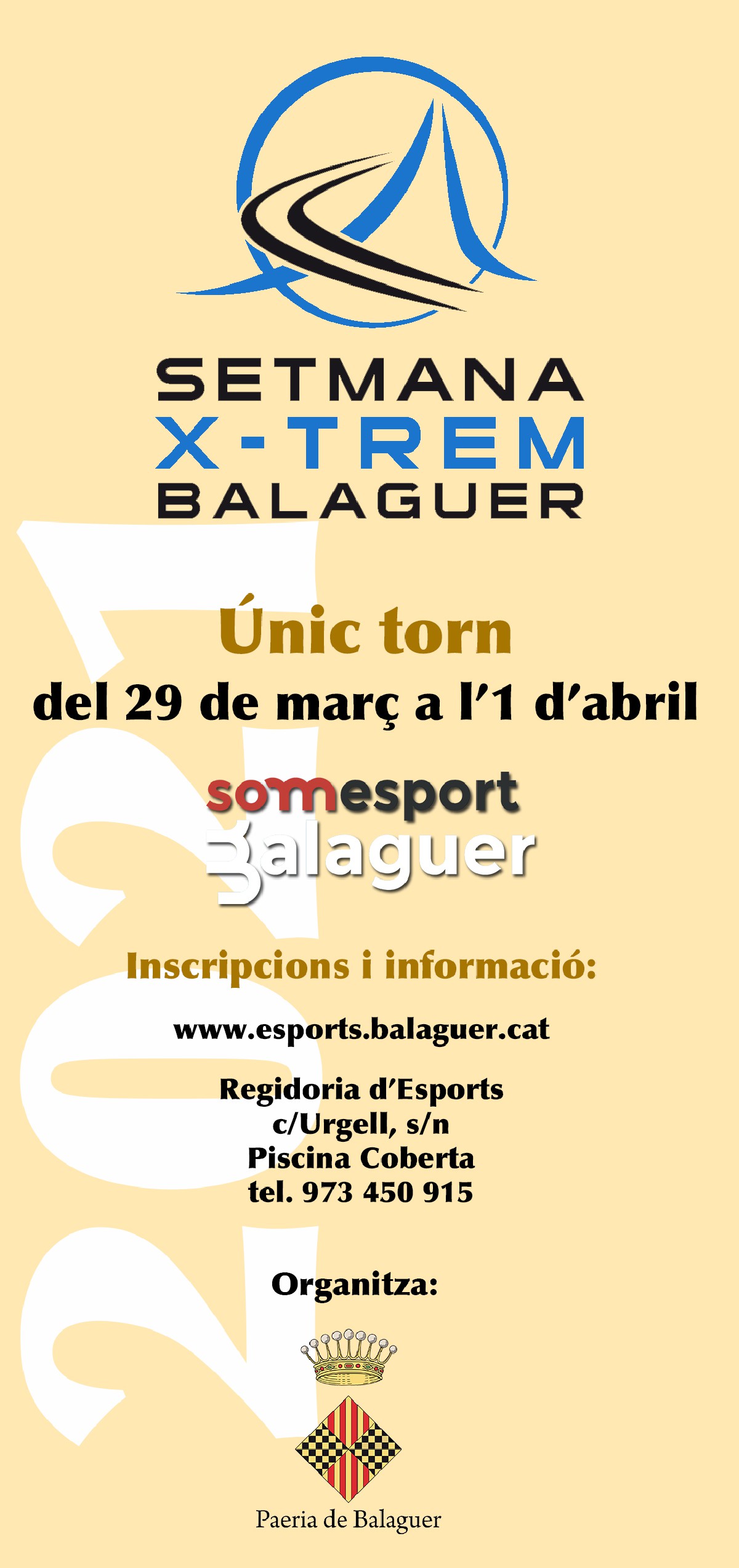 Del 29 de març i fins a l'1 d'abril, coincidint amb les vacances del període de Setmana Santa, l'àrea d'esports de la Paeria de Balaguer, continuarà amb la setmana X-trem.