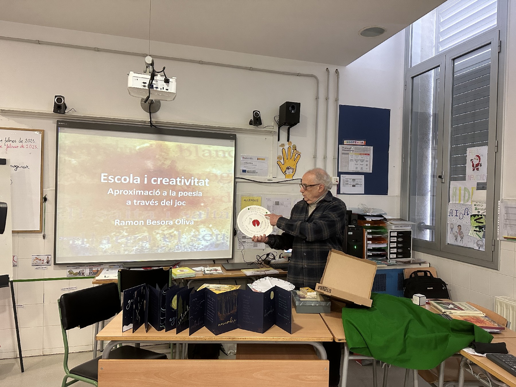 Amb l'objectiu que des dels centres educatius de la ciutat es conegui la seva obra i la puguin treballar amb l'alumnat, el mateix Ramon Besora ha dut a terme el taller "Aproximació a la poesia a través del joc" adreçat al professorat d'Infantil i Primària, aquest dimecres al col·legi Àngel Guimerà.