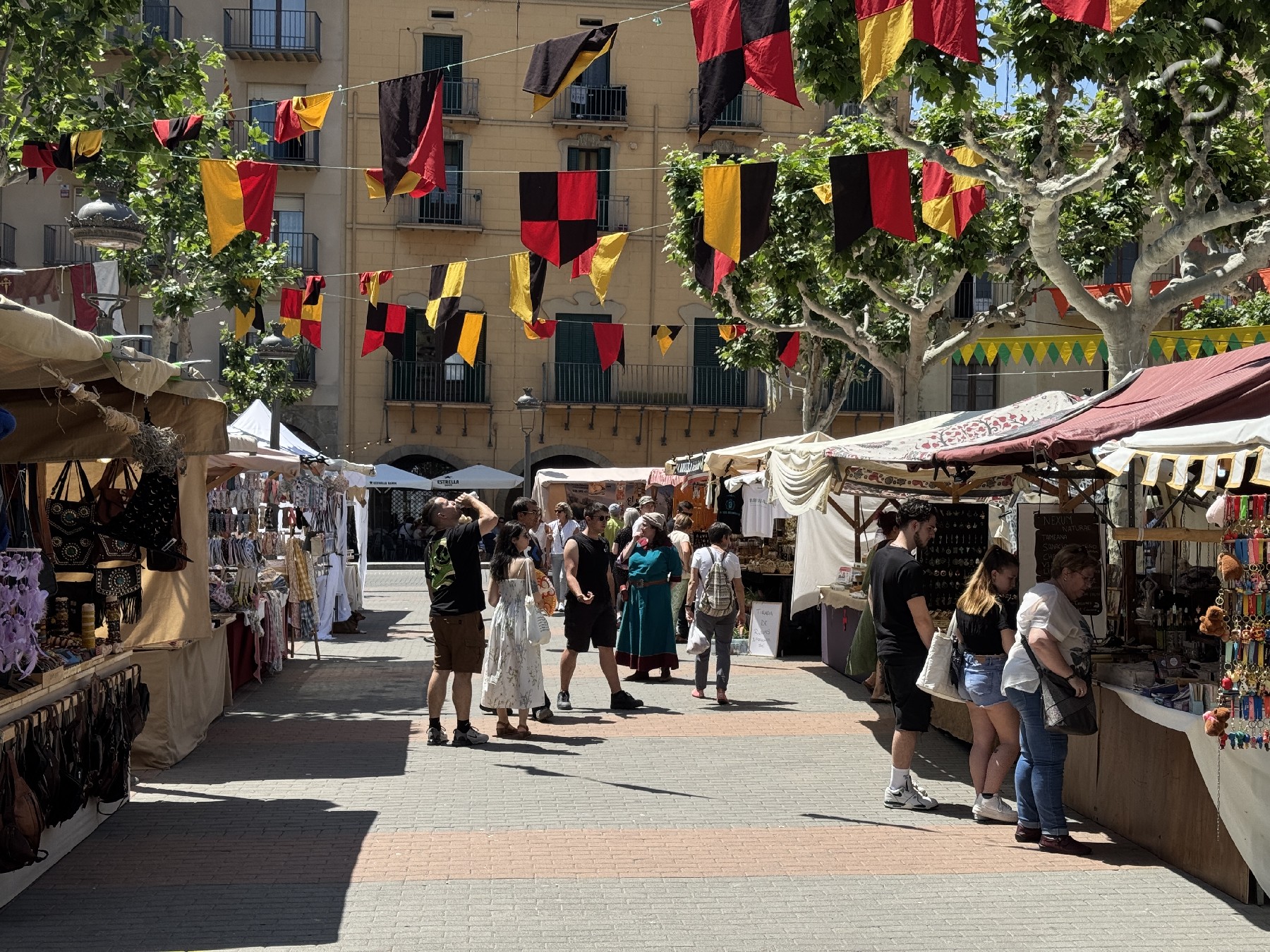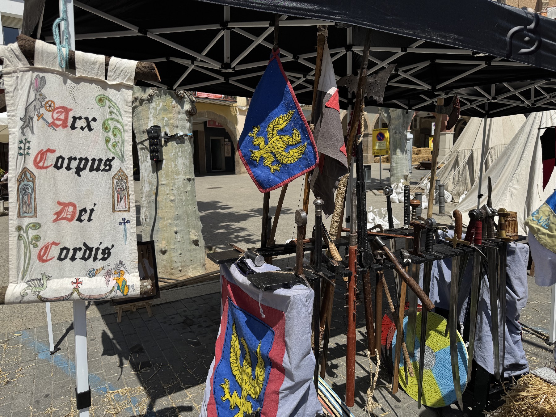 La plaça del Mercadal acull el campament medieval, on grups de recreació històrica mostren escenes de la vida militar i civil de l'època, amb demostracions de combat, vestimenta i costums.