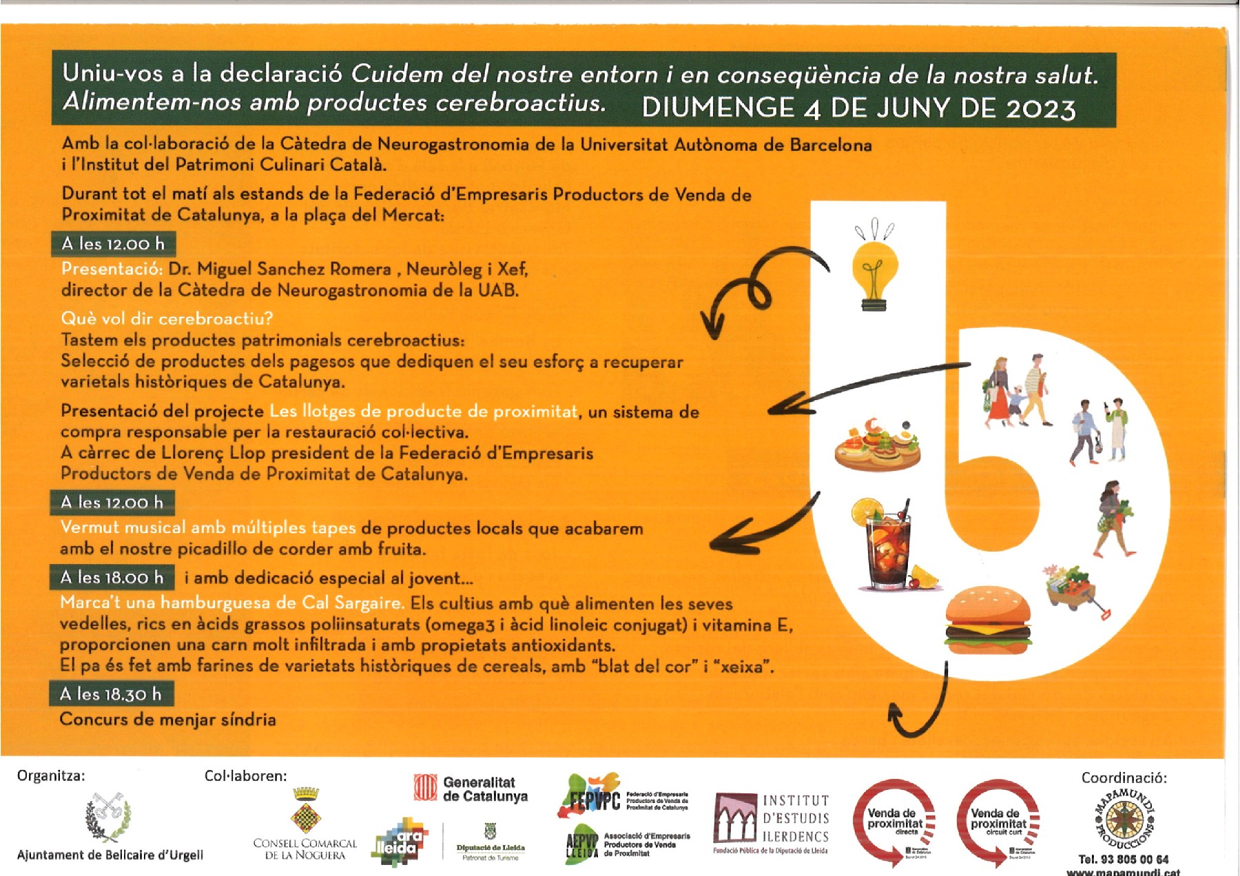 Hi haurà xerrades, i un vermut musical al migdia, i a més, els assistents tindran l'oportunitat de tastar una selecció d'aquests productes cerebroactius, i es presentarà el projecte "Les llotges de producte de proximitat", un sistema de compra responsable per a la restauració col·lectiva.