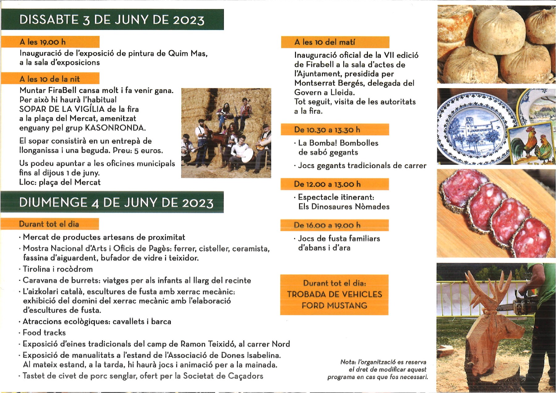 A les 10 del matí, tindrà lloc la inauguració oficial de la VII edició de Firabell a la sala d'actes de l'Ajuntament, presidida per Montserrat Bergés, delegada del Govern a Lleida. A continuació, les autoritats visitaran la fira per conèixer de prop tots els expositors i activitats que s'hi presenten.