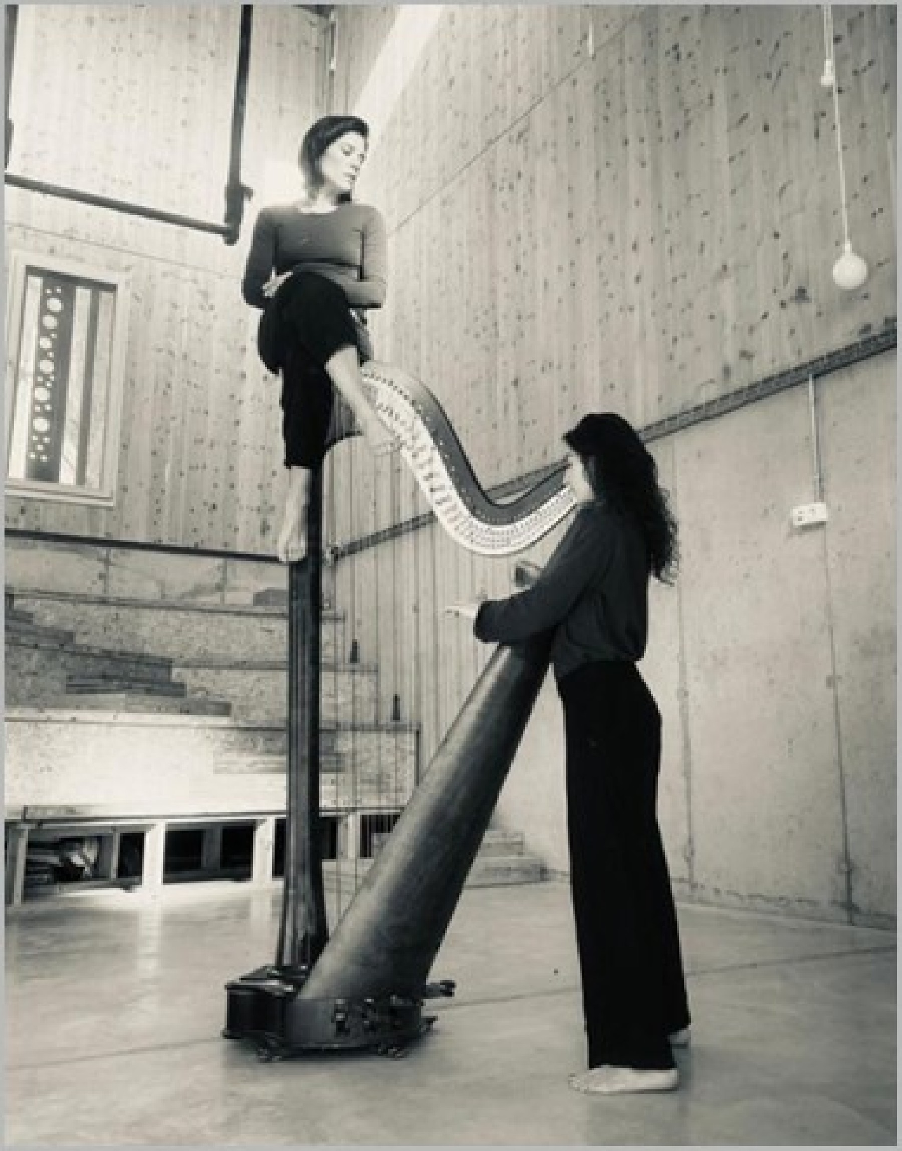 "Júlia i Berta en escena. Un trapezi flota a l'aire. Una arpa les transporta a una dimensió celestial. El repte en comú: Teixir la xarxa que tot ho acull.