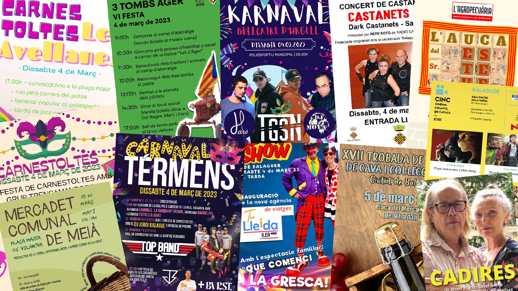 Cap de setmana dedicat als monestirs del Cister i al col·leccionisme a Balaguer. A comarca es celebren els últims carnavals, a més d'altres propostes com fires, teatre i uns Tres Tombs