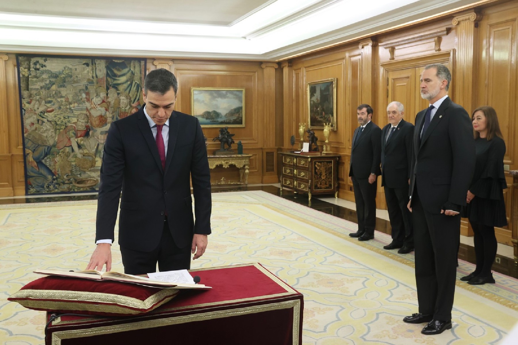 Pedro Sánchez promet el càrrec de president del govern espanyol davant Felip VI. El president espanyol anunciarà aquest cap de setmana la conformació del nou govern