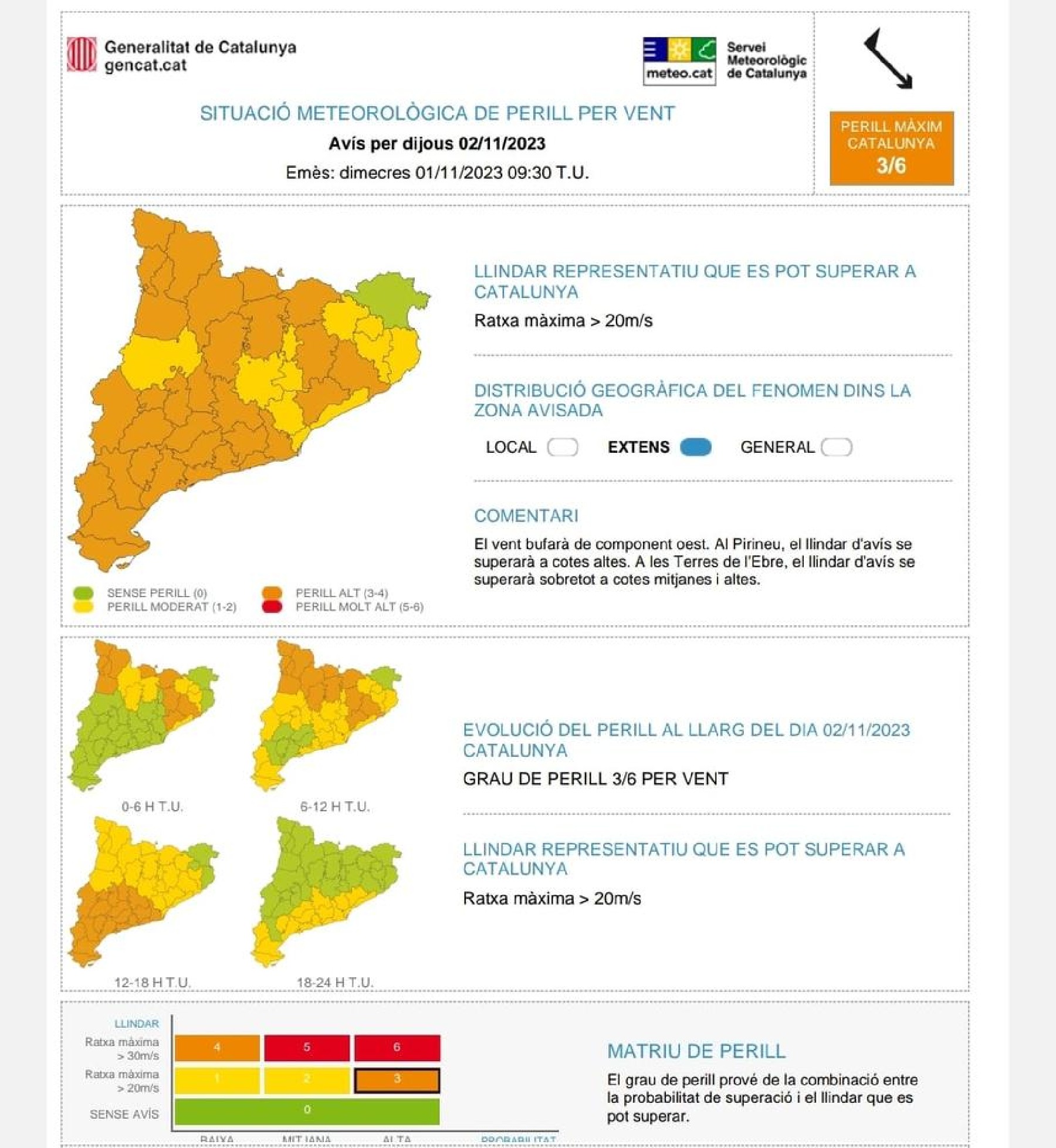 Protecció Civil estén l'alerta per fortes ventades a tot el cap de setmana. L'episodi durarà fins diumenge al migdia i es podran assolir ratxes superiors a 72 km/h a diversos punts del territori