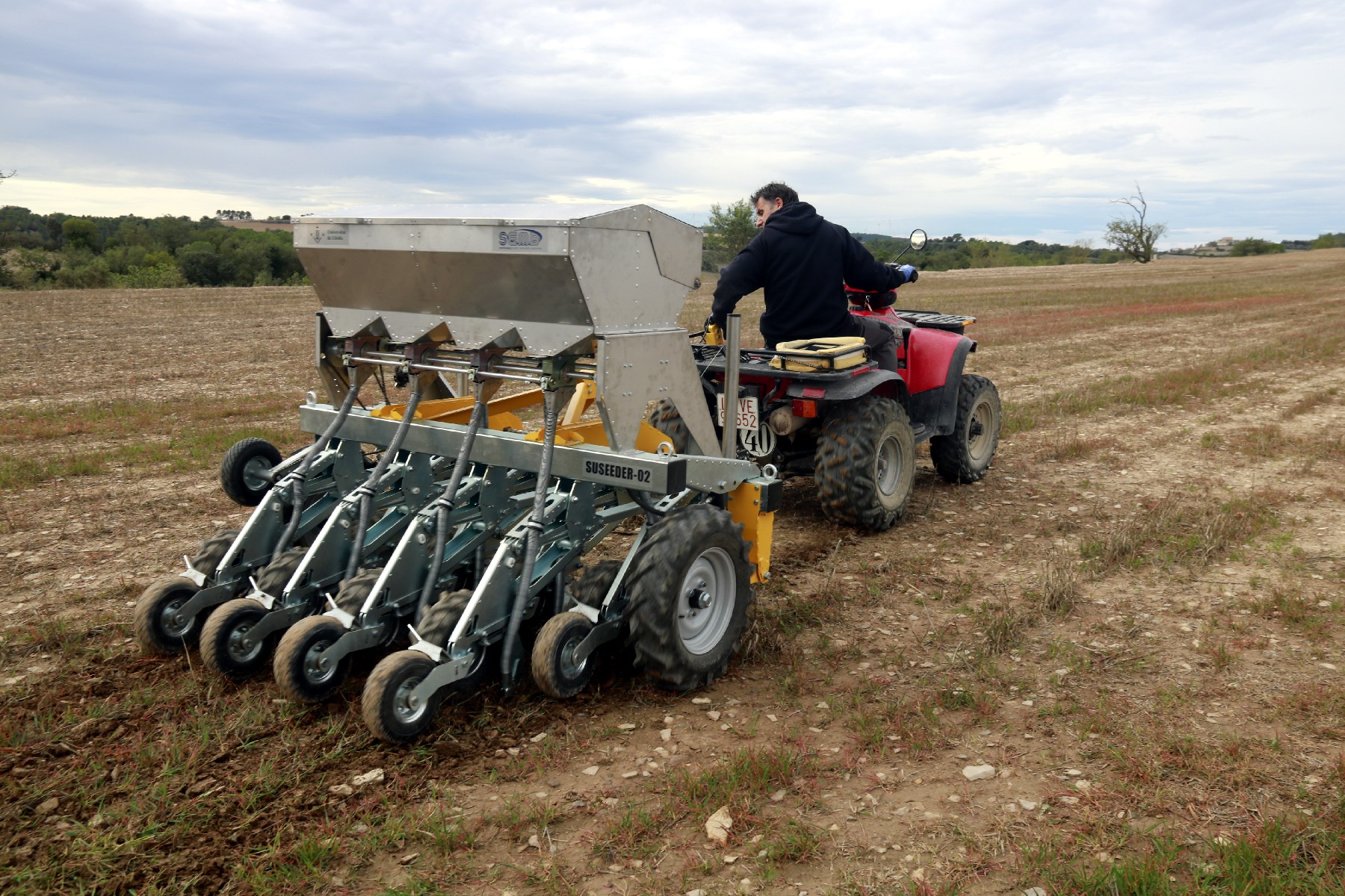 Investigadors de la UdL dissenyen i construeixen una minisembradora per a parcel·les petites. La màquina s'adapta a l'estat del terreny i consumeix menys combustible que una sembradora tradicional