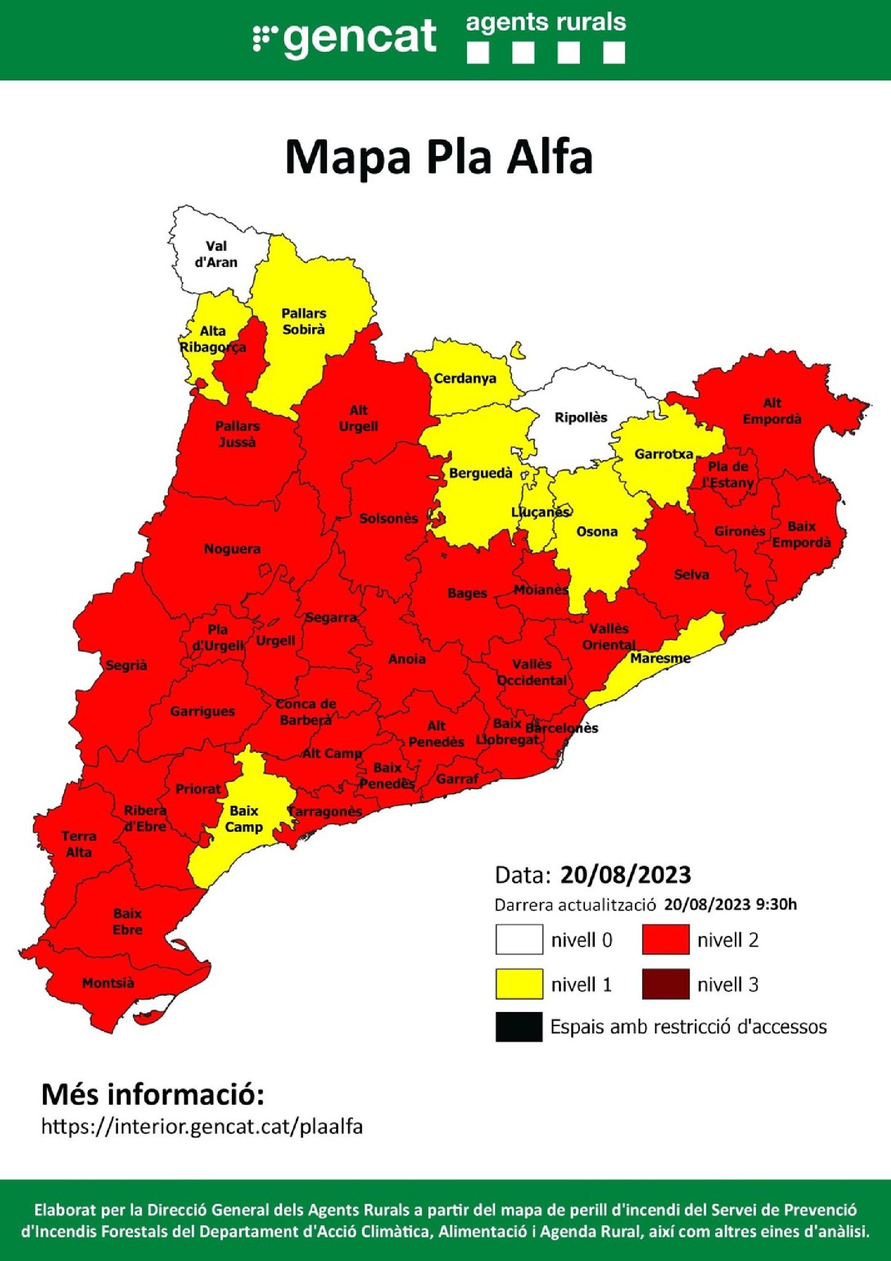 El Govern prorroga un dia més les mesures especials per l'elevat risc d'incendis. Les restriccions vigents s'aplicaran fins dissabte a les 00 h