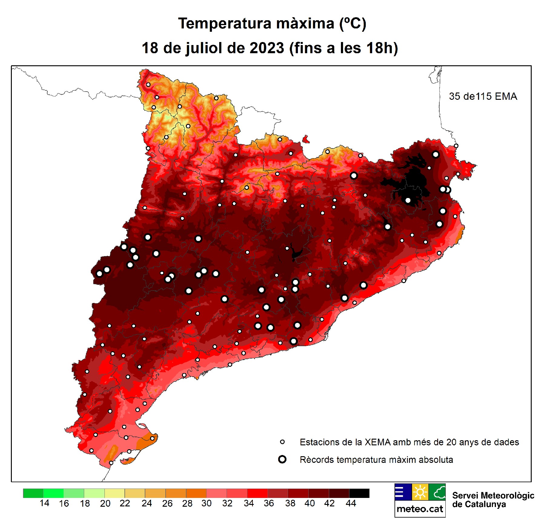 45.1ºC nou rècord de temperatura enregistrada a Catalunya per la Xarxa d'Estacions Meteorològiques Automàtiques