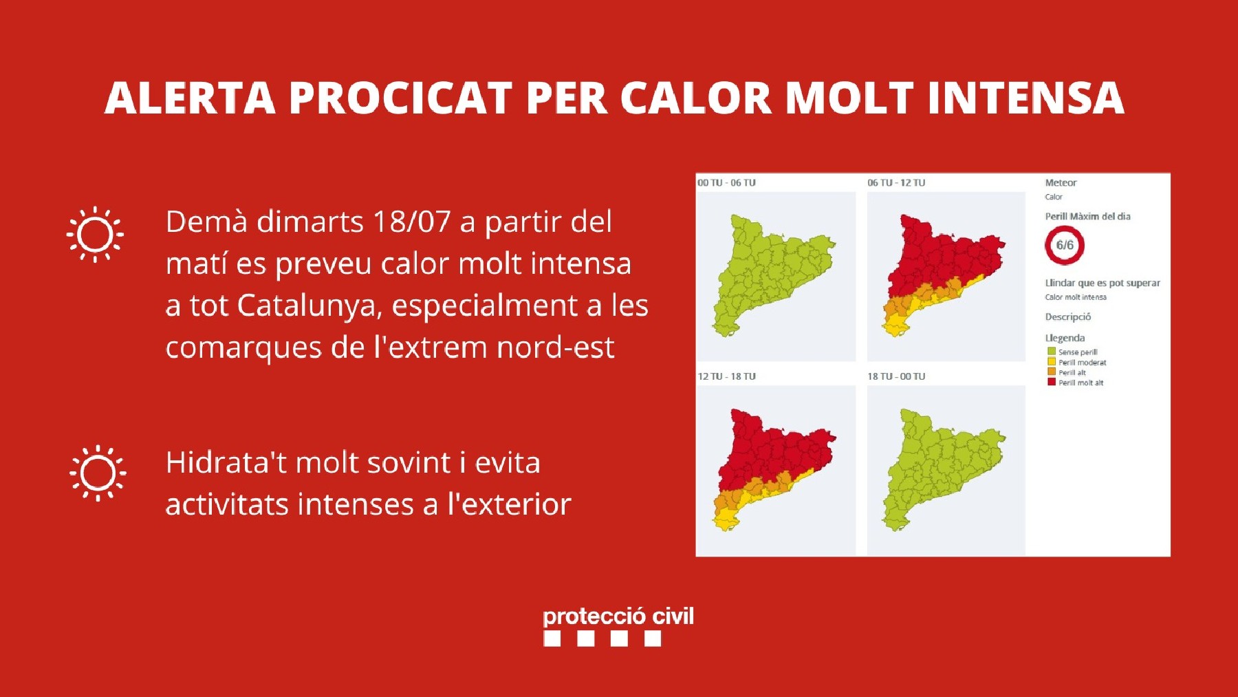 Protecció Civil activa l'ALERTA del PROCICAT per calor molt intensa i generalitzada demà dimarts