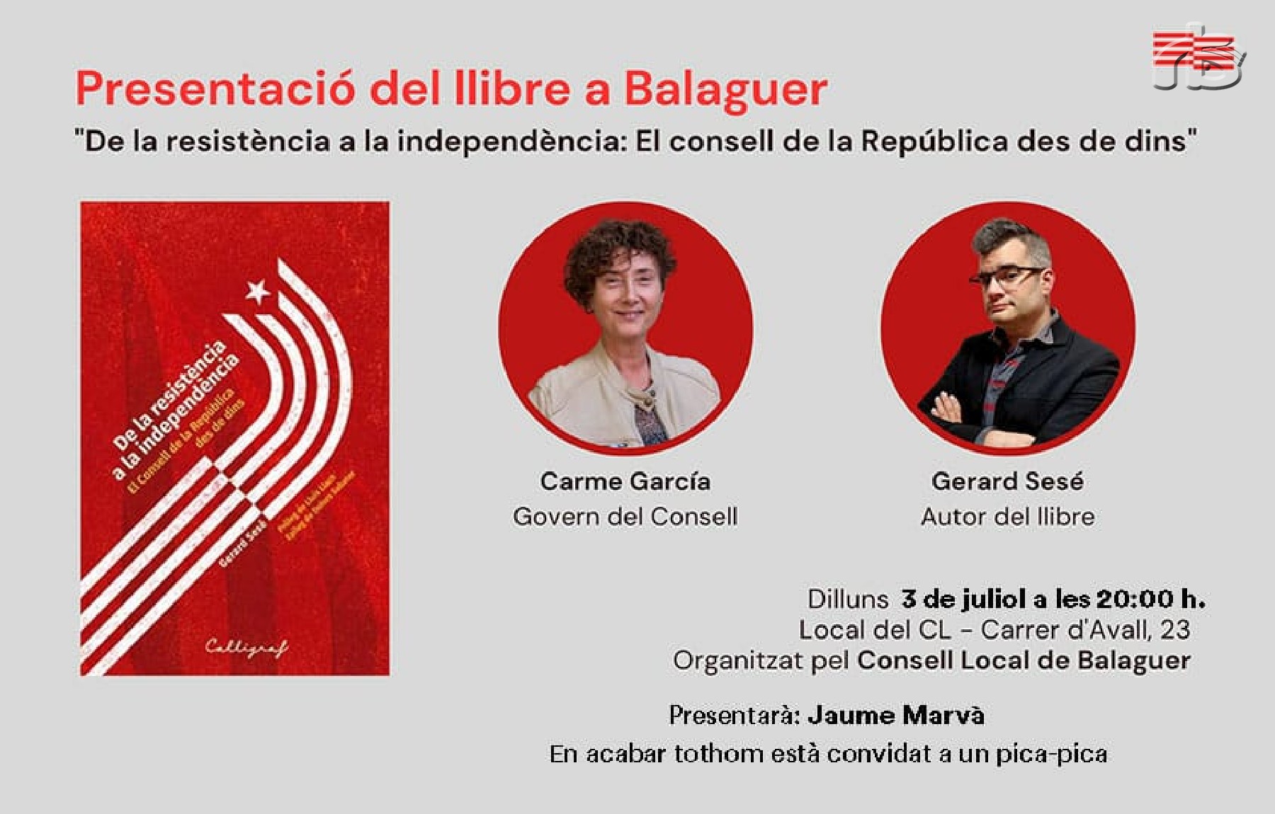 Aquest dilluns es farà a Balaguer la presentació del llibre ' De la resistència a la independència: el consell de la República des de dins'', del periodista i escriptor Gerard Sesé