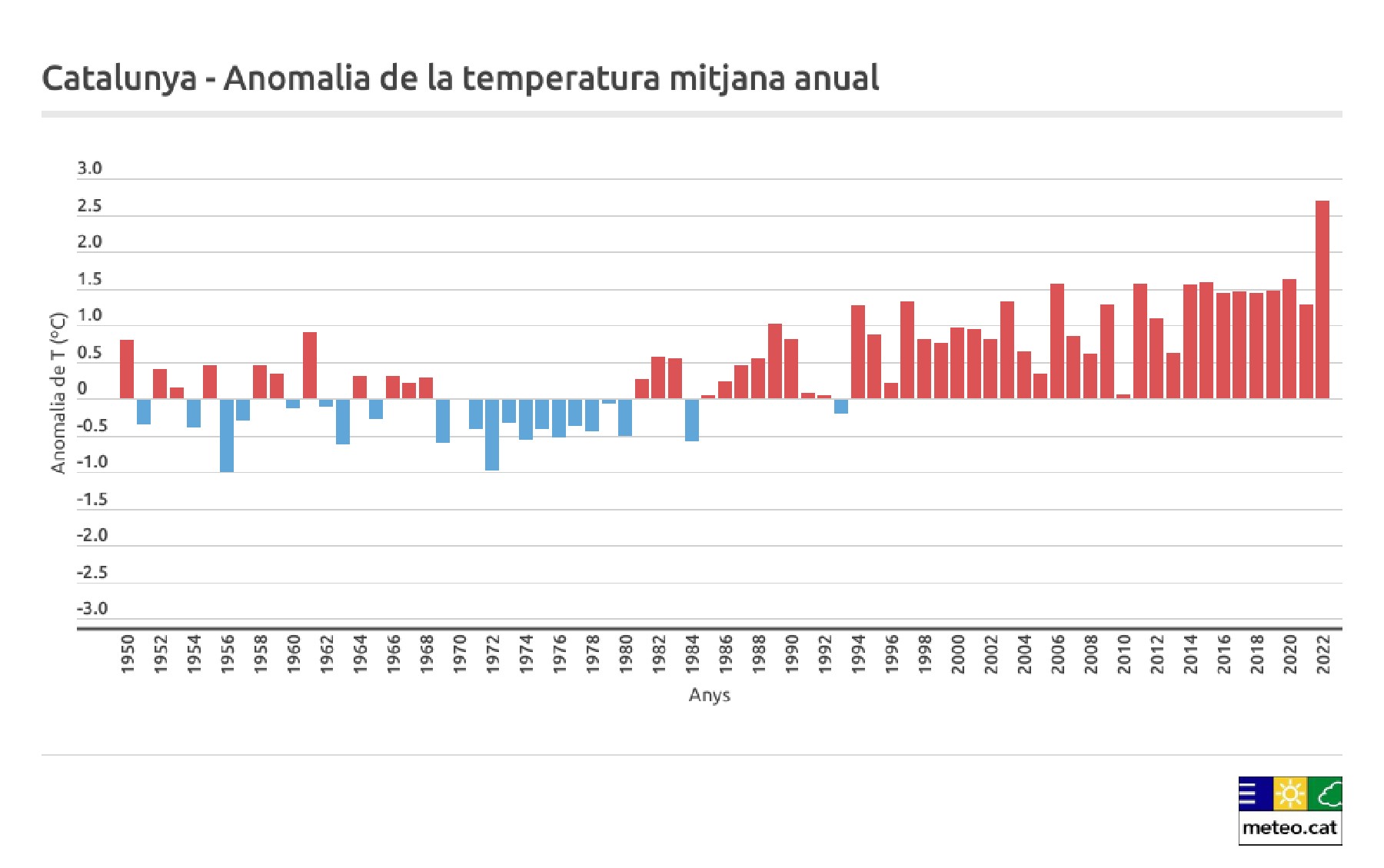 L'any 2022 ha estat el més càlid i el més sec per al conjunt de Catalunya des de 1950. La intensitat i durada dels períodes de sequera pluviomètrica ha anat augmentant durant els darrers decennis