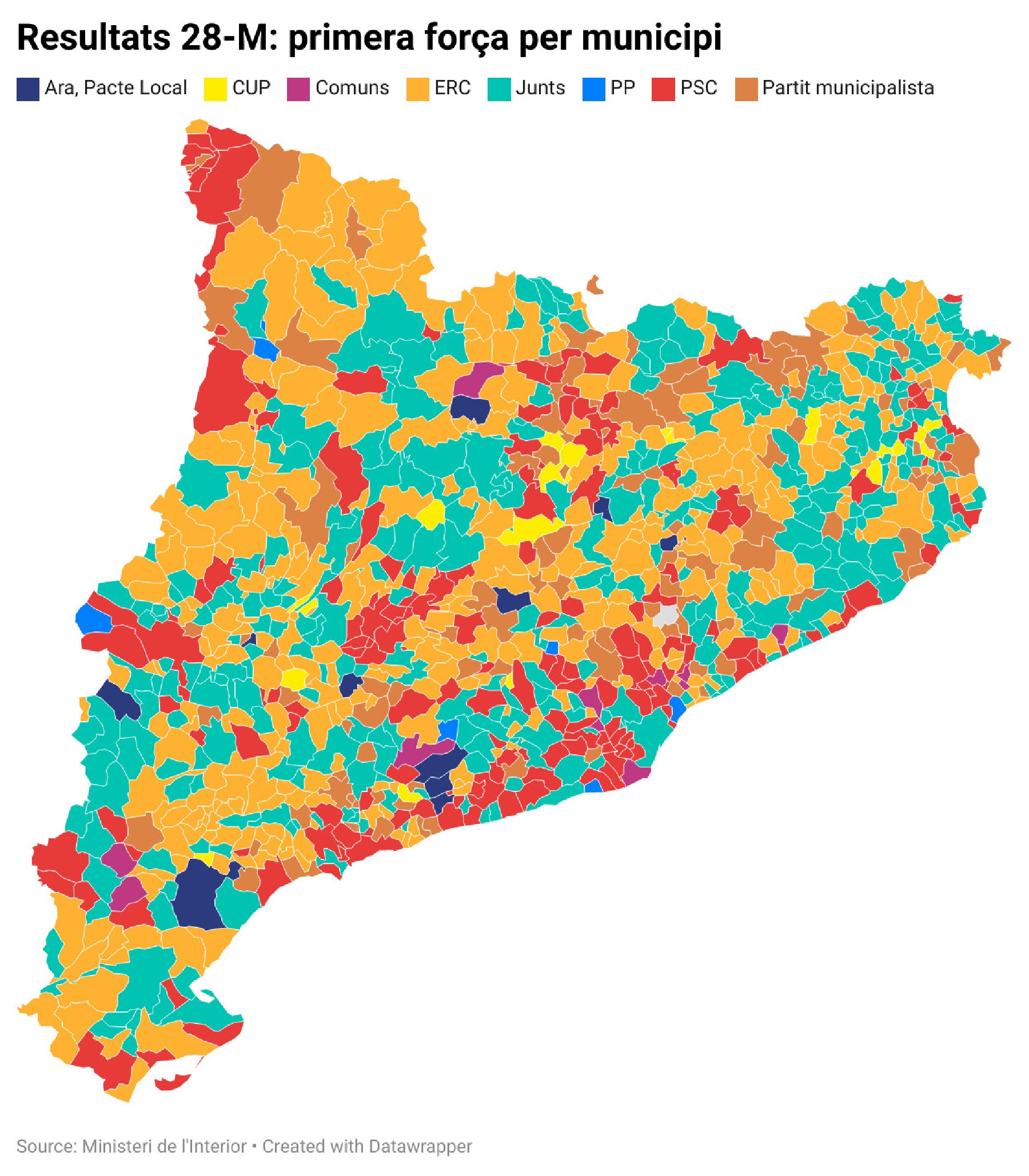 ERC guanya les eleccions municipals a Catalunya en regidors però el PSC és el més votat. Els republicans són la tercera força en vots, per darrere dels socialistes i de Junts