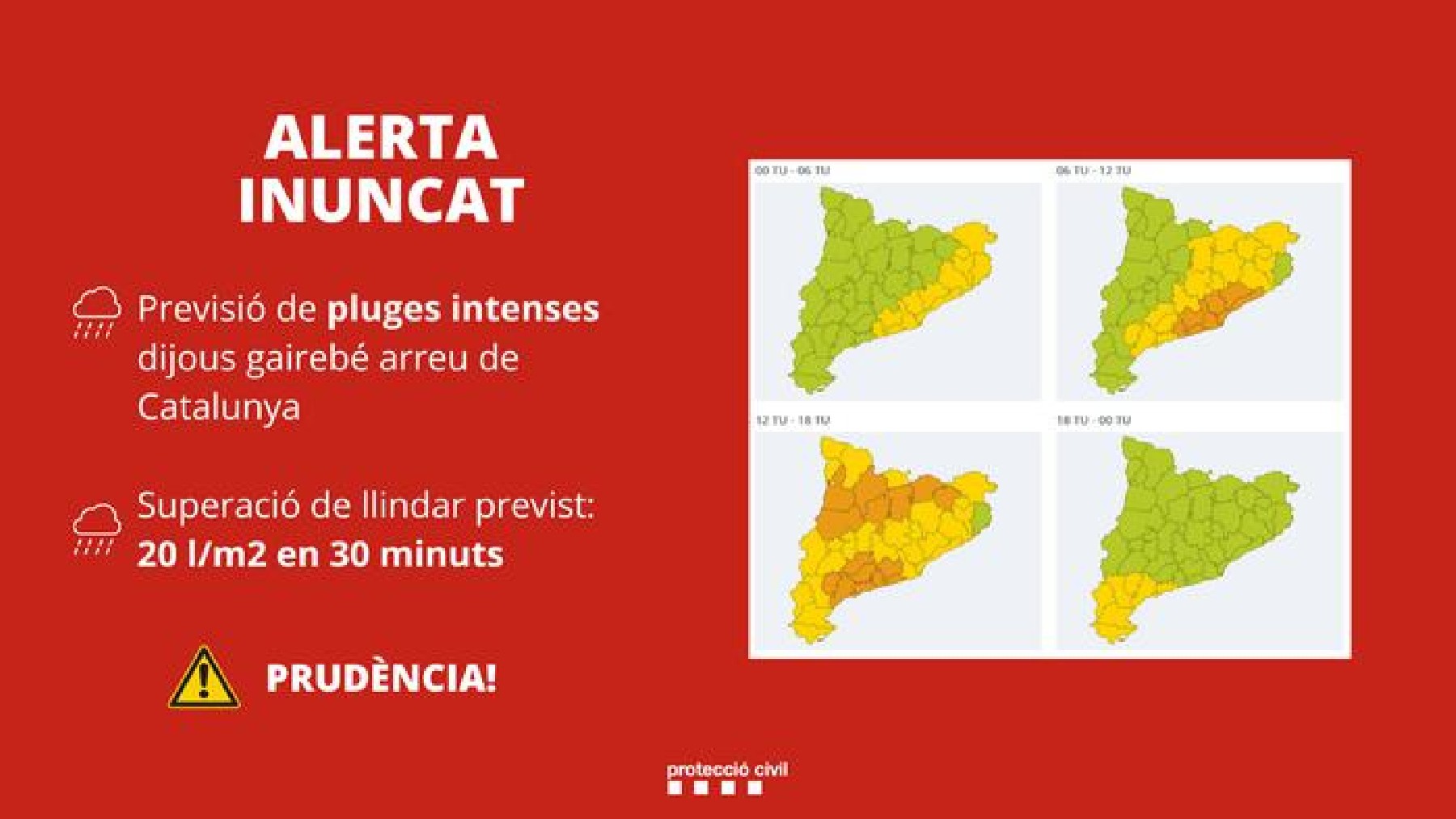 Protecció Civil activa l'alerta del pla l'INUNCAT per la previsió de pluges intenses dijous