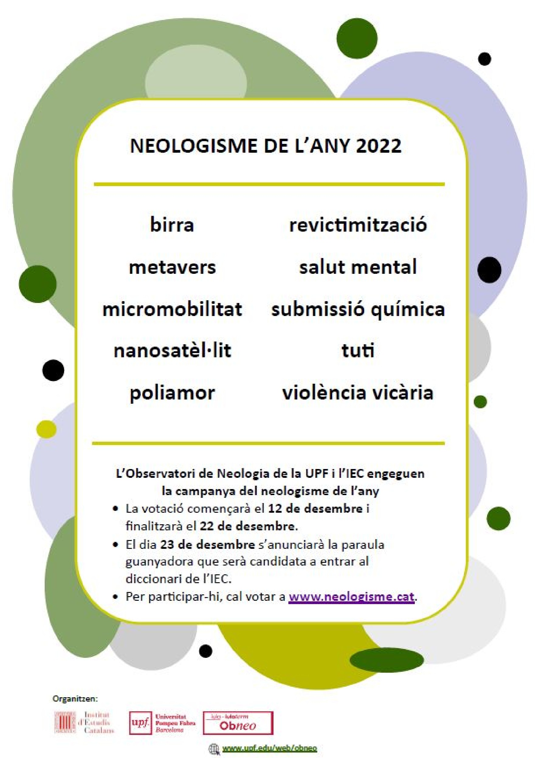 Birra, metavers, nanosatèl·lit, poliamor, salut mental i tuti opten a ser el neologisme de l'any 2022. L'Observatori de Neologia de la UPF i l'IEC obren el període de votació entre 10 candidates