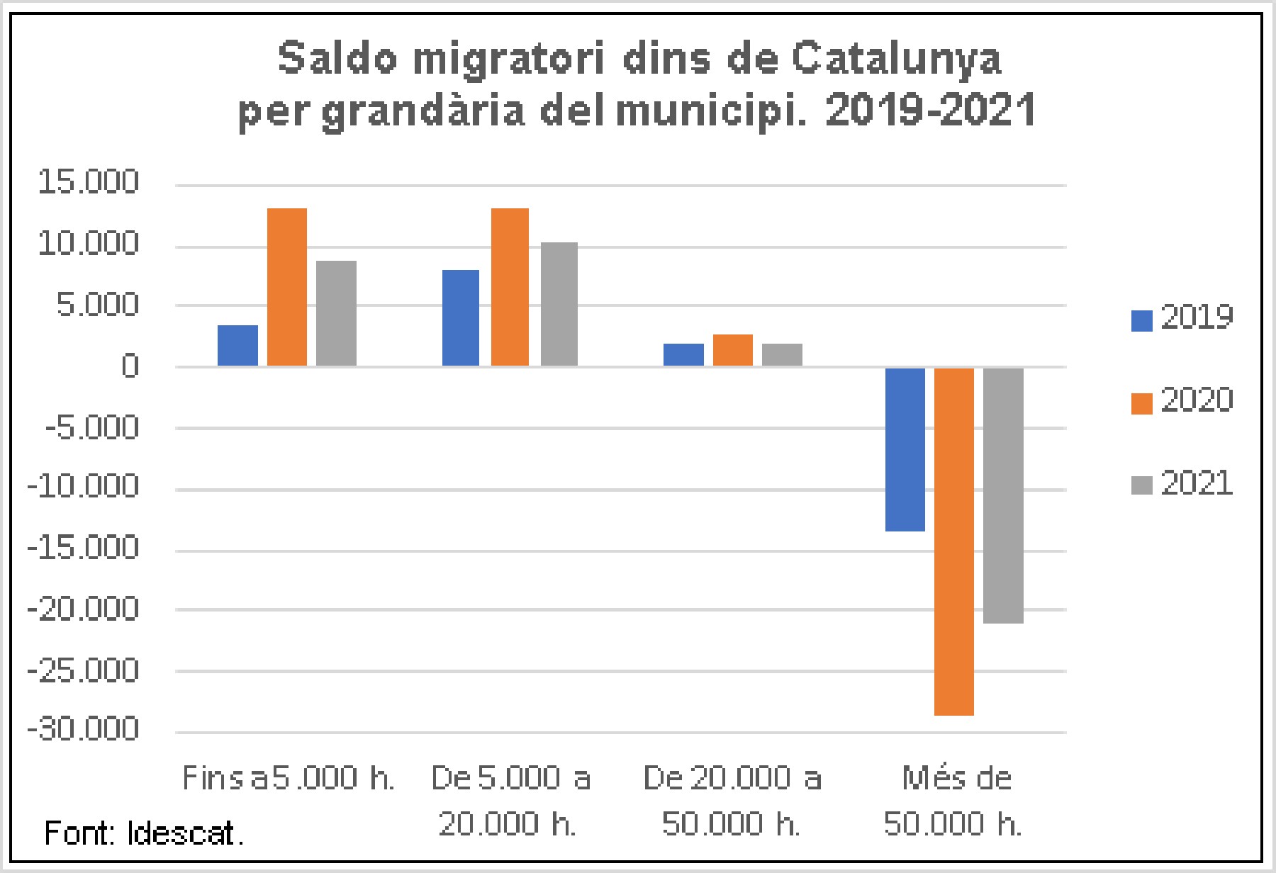 L'any 2021 es registren 280.677 canvis de residència entre municipis de Catalunya, el valor més alt dels darrers 15 anys. Els municipis grans tenen un saldo migratori negatiu amb la resta de Catalunya