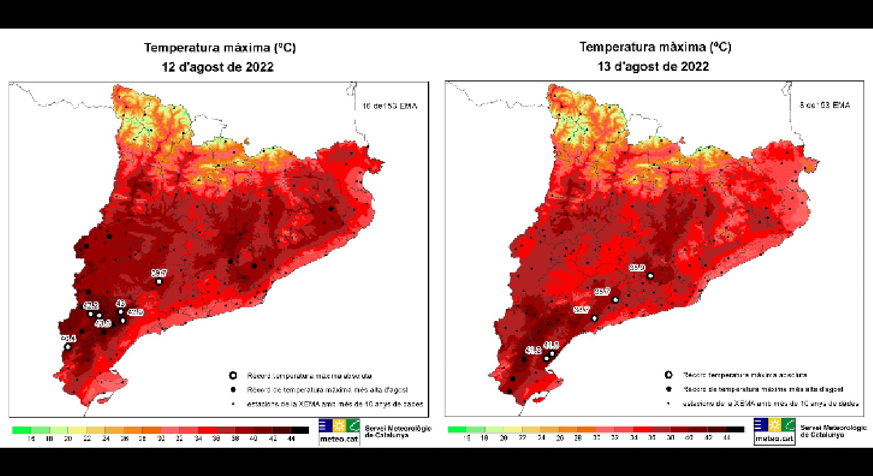 Balanç d'una primera quinzena d'agost excepcionalment calorosa a Catalunya. El rècord va ser a Alcarràs el 29 de juny de 2019 i es van registrar 43,8 ºC