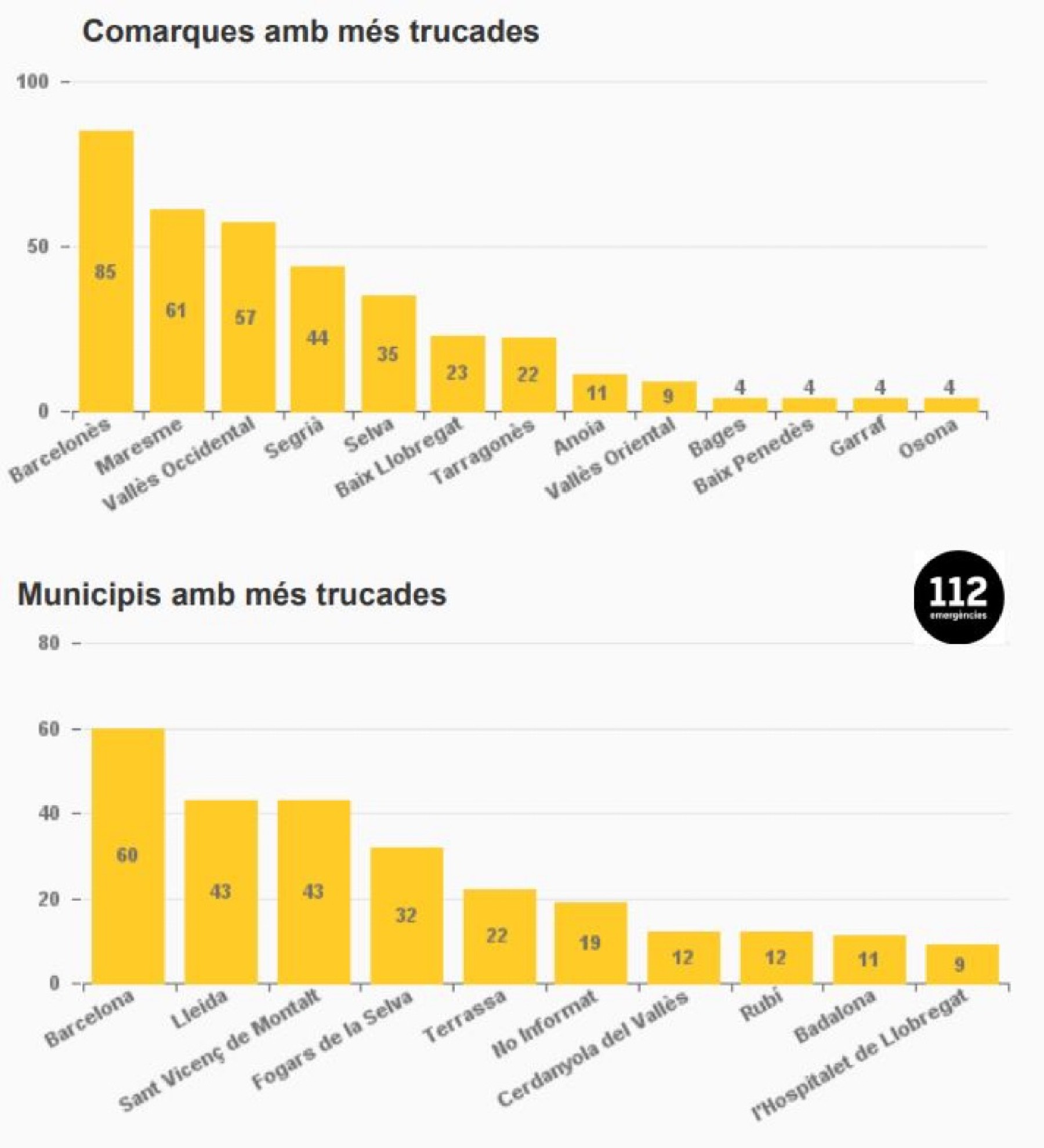 Els Bombers reben 115 avisos per l'episodi de pluja intensa, tot i que cap de greu. Al telèfon d'emergències hi arriben més de 300 trucades per
