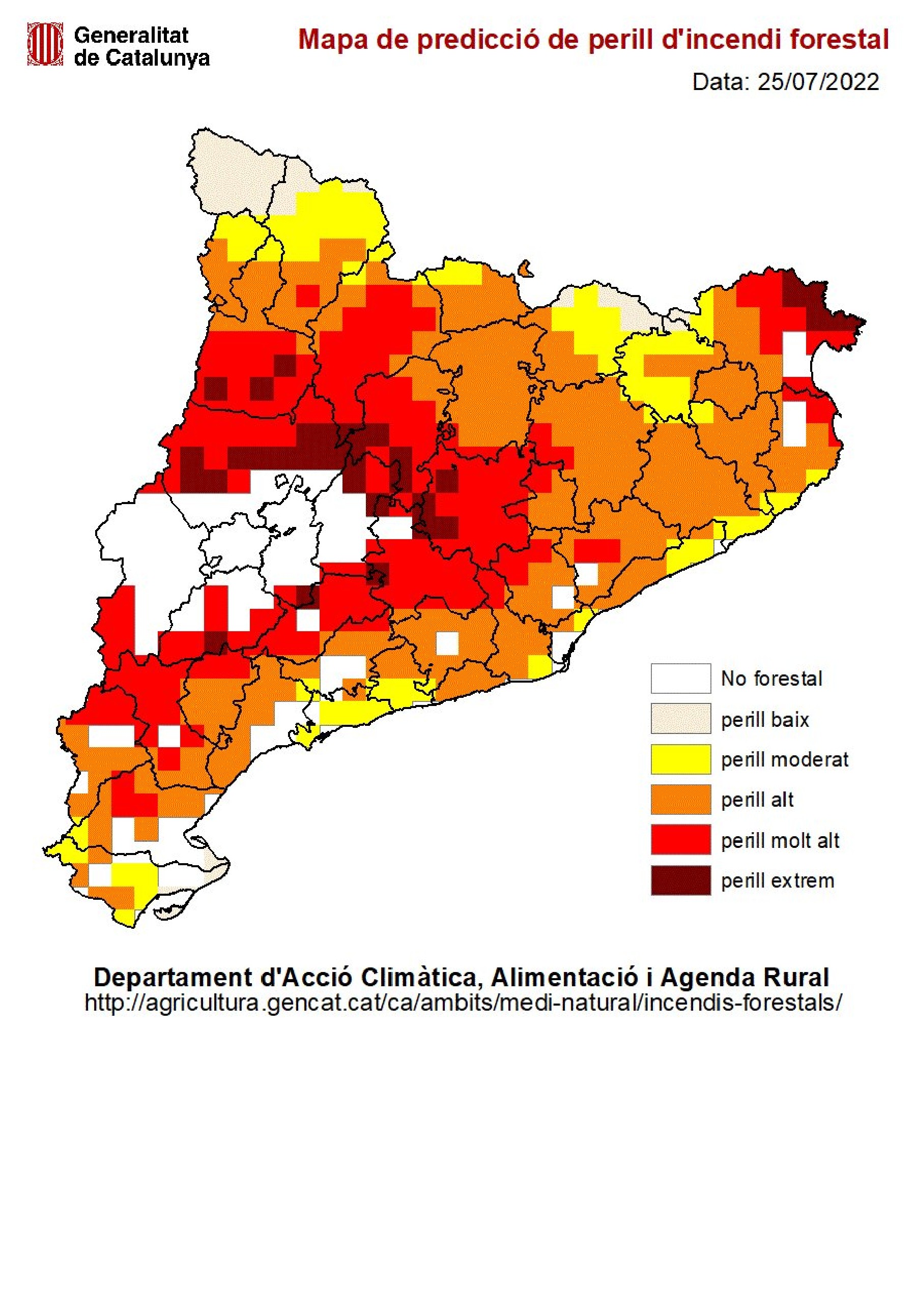 Interior rebaixa a partir de dimarts a 30 municipis i tres espais naturals de l'Empordà les restriccions per risc d'incendis. El Departament decideix no prorrogar les mesures que afectaven 357 municipis per la previsió de millora de la situació