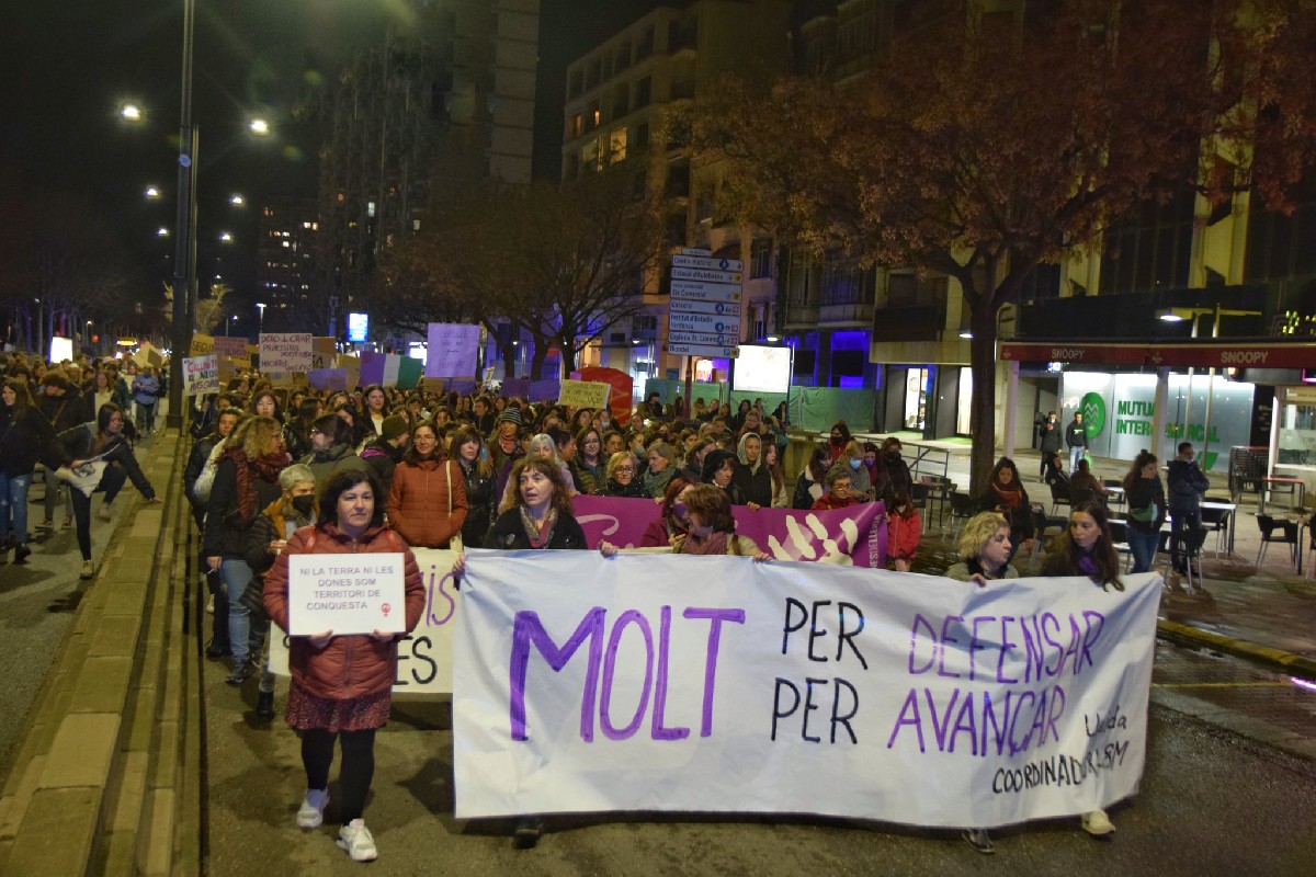 Lleida surt al carrer per reivindicar el 8-M i reclamar la igualtat efectiva entre dones i homes. Unes 700 persones participen en la manifestació convocada per la Marea Lila
