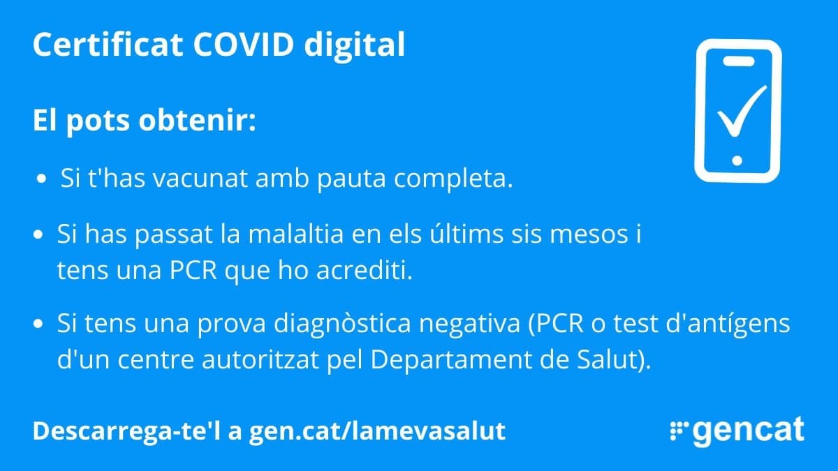 El passaport covid per accedir a la restauració, els gimnasos i les residències entrarà en vigor aquest divendres. El conseller demana guardar el document per no haver-lo de tornar a baixar