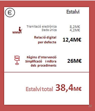 La Generalitat aprova un projecte de llei que permetrà a les empreses facilitar un sol cop les dades a l'administració. La normativa beneficia 564.000 empreses i 362.000 autònoms i suposa un estalvi de més de 38 MEUR