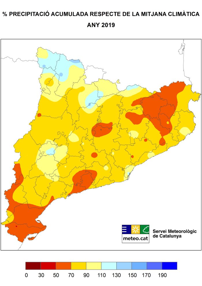El 2019 ha estat càlid i sec a Catalunya. El dèficit de precipitació ha afectat la major part del territori