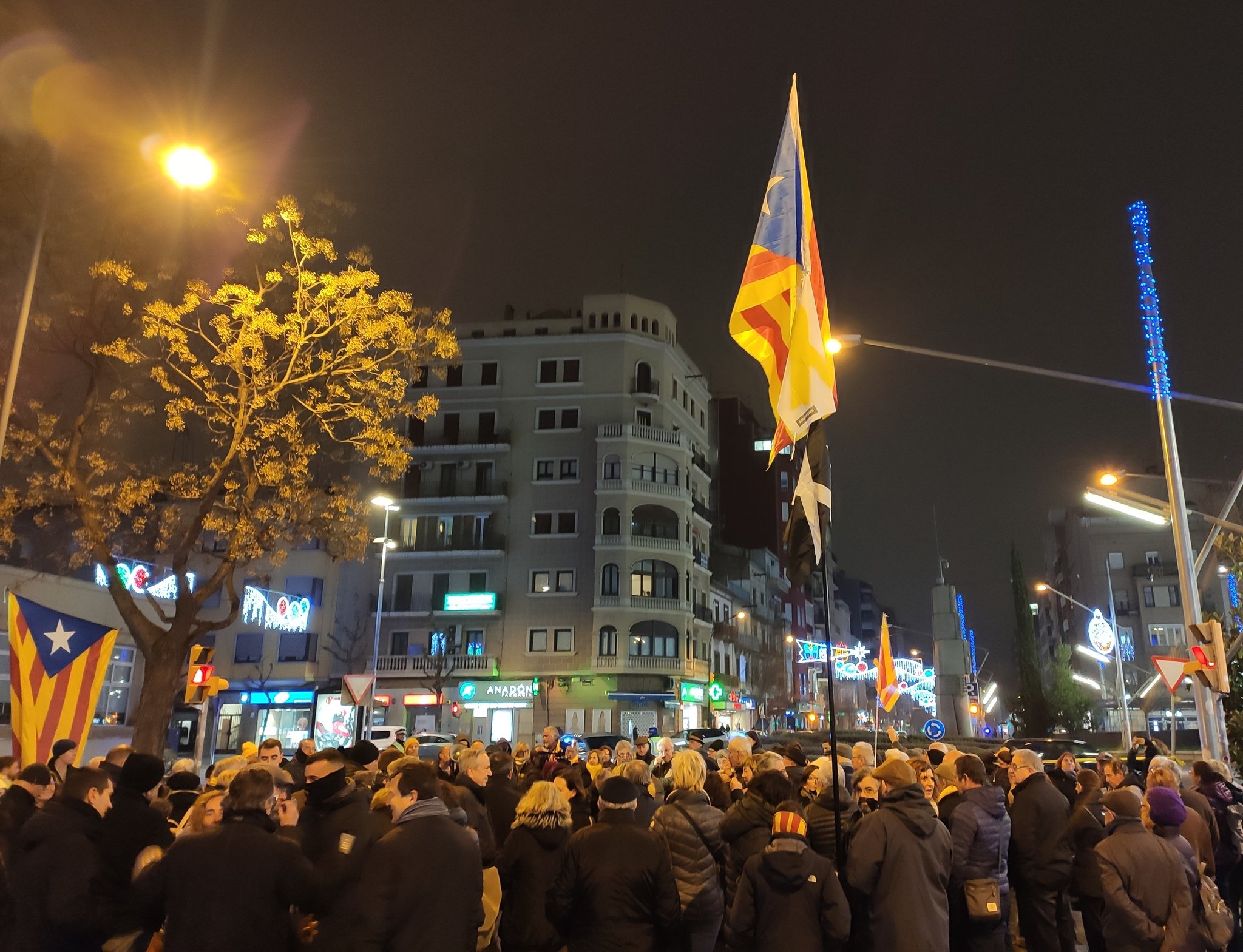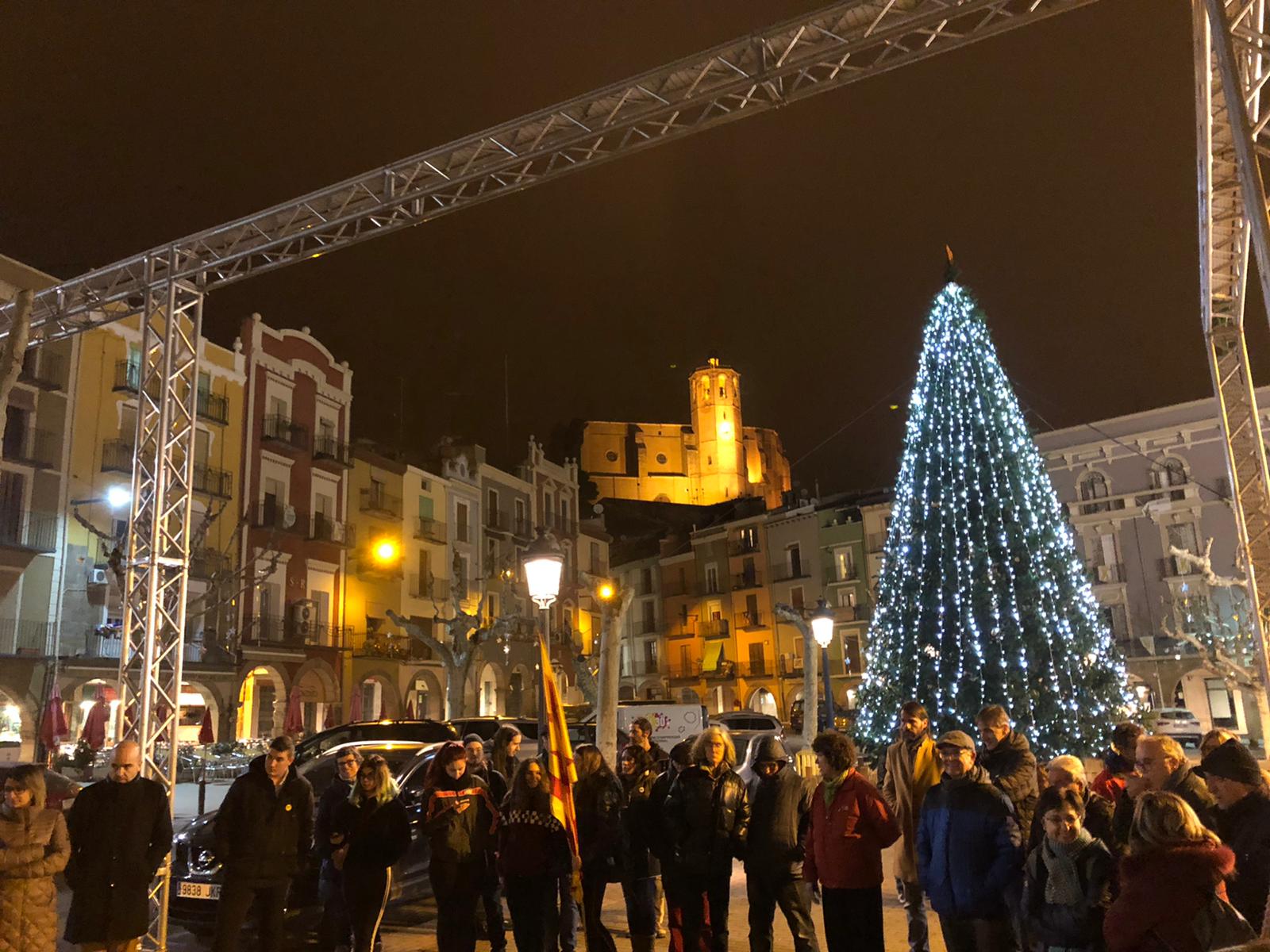 Una cinquantena de persones s'han concentrat a la plaça Mercadal de Balaguer per protestar contra la decisió de la Jec per la inhabilitació de Torra i el veto a Junqueras per a accedir a la seva acta d'eurodiputat.