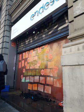 L'Aliança contra la Pobresa Energètica exigeix a Endesa que signi els convenis per condonar el deute a les famílies. Una vintena d'activistes empaperen una oficina de la companyia que reclama les factures de 25.000 llars vulnerables