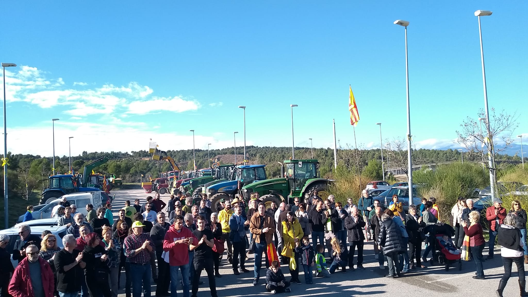 Una seixantena de tractors convocats per Unió de Pagesos s'han concentrat aquest dissabte a Lledoners en contra de la sentència de l'1-0. Els participants han format la paraula llibertat amb els seus vehicles