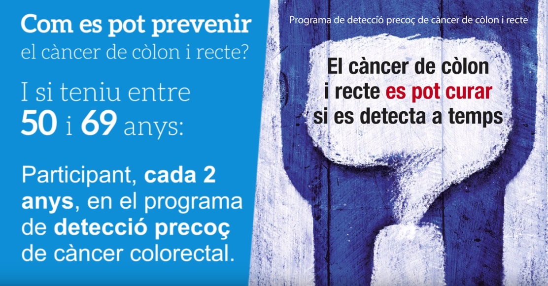 El programa de cribratge de càncer de còlon ja arriba a tot Catalunya i permet augmentar la supervivència. Salut crida les persones majors de 50 anys a fer-se el test perquè no només pot detectar de forma precoç la malaltia sinó prevenir-la.
