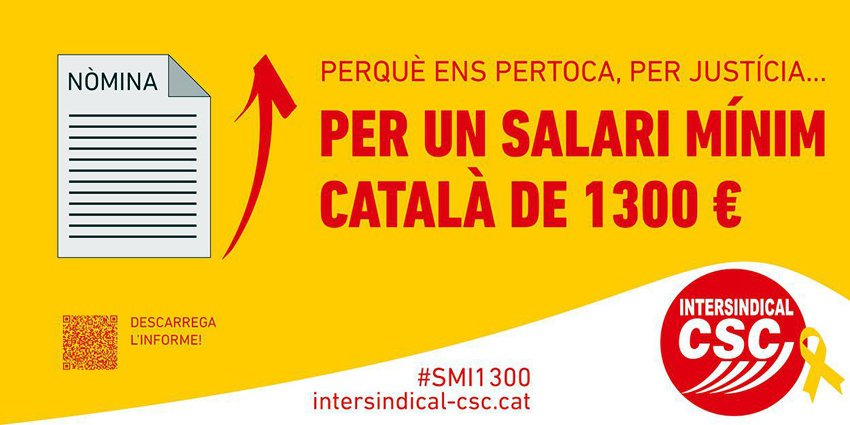 La Intersindical-CSC impulsa una campanya per reclamar un salari mínim català de 1.300 euros