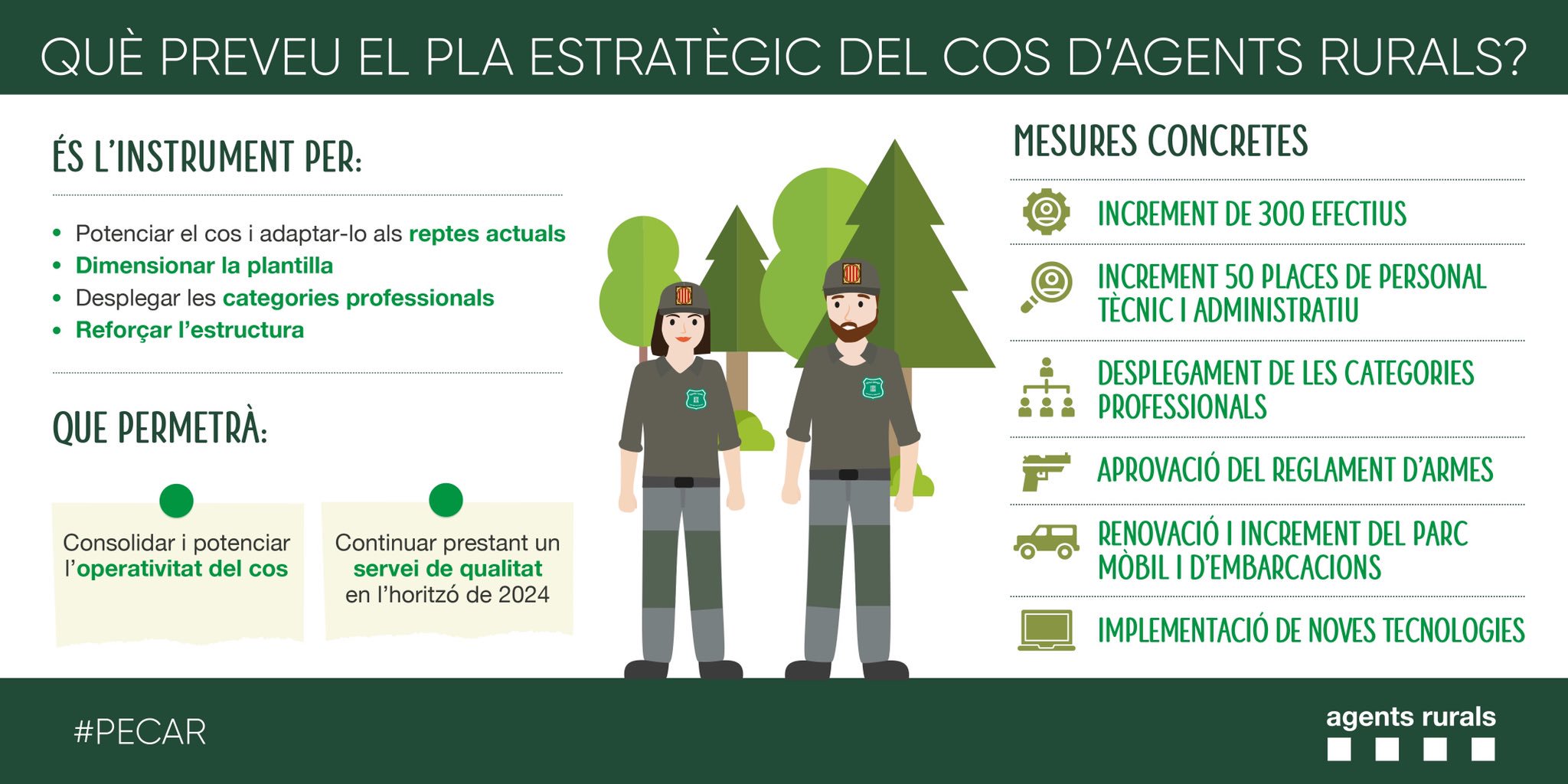 El Govern aprova el reglament d'armes per reforçar la seguretat del cos d'Agents Rurals. L'assassinat de dos agents rurals a Aspa el 2017 va obrir el debat