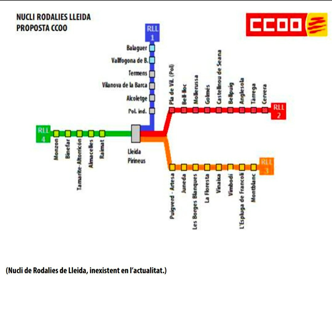 CCOO presenta un informe sobre les comunicacions ferroviàries entre Lleida i Barcelona i amb una proposta per al classe treballadora centrada en les freqüències dels trens Avant i rodalies que abasten fins a Cervera, Balaguer, Montblanc i Montsó.