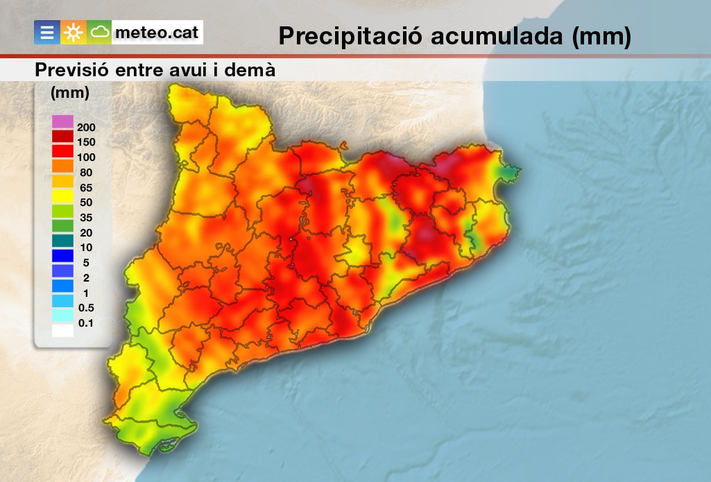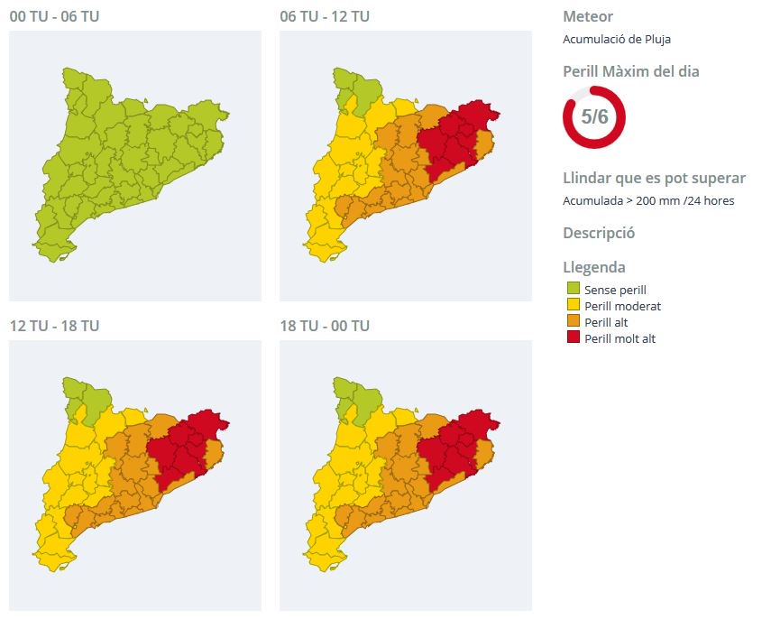 Alerta de Protecció Civil de la Generalitat pel temporal de pluges, vent i mala mar. S'esperen acumulacions de 100 l/m2 de manera generalitzada i localment es podran superar els 200 l/m2. Aquest matí s'ha reunit el Comitè tècnic del pla INUNCAT