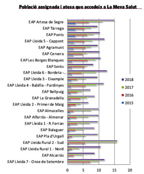 Més de 31.000 persones s'acrediten a l'espai La Meva Salut a la Regió Sanitària Lleida el 2018, un 10,10% dels majors de 18 anys atesos a l'atenció primària.