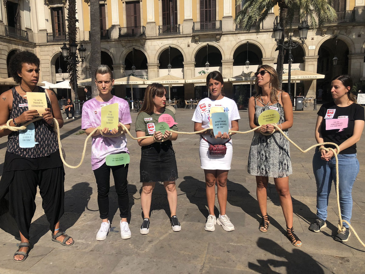 L'Avalot reclama la creació d'un registre de becaris a Catalunya i que tinguin un contracte de treball amb l'empresa. Els Joves de la UGT organitzen una 'venda d'esclaus' simbòlica a la plaça Reial per denunciar les precàries condicions laborals dels jove
